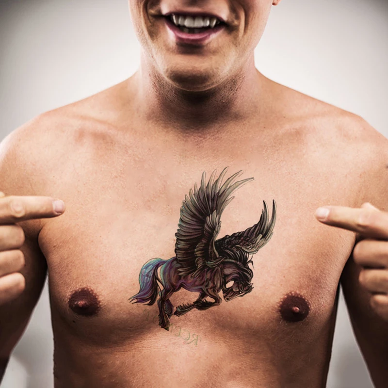 Тату-наклейки временные водостойкие, крылья Пегаса, лошади, животные, фальшивое тату, тату боди-арт для девочек и мужчин, детские