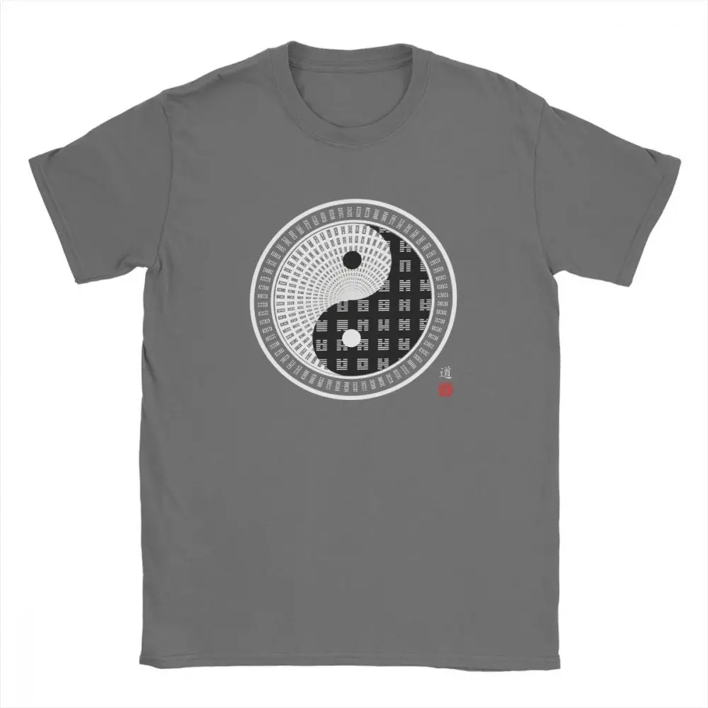 Футболка мужская в китайском стиле, хлопковая рубашка с коротким рукавом, с принтом в виде шестигранной спирали, в стиле тайчи, Инь-Ян, Чинг, 64