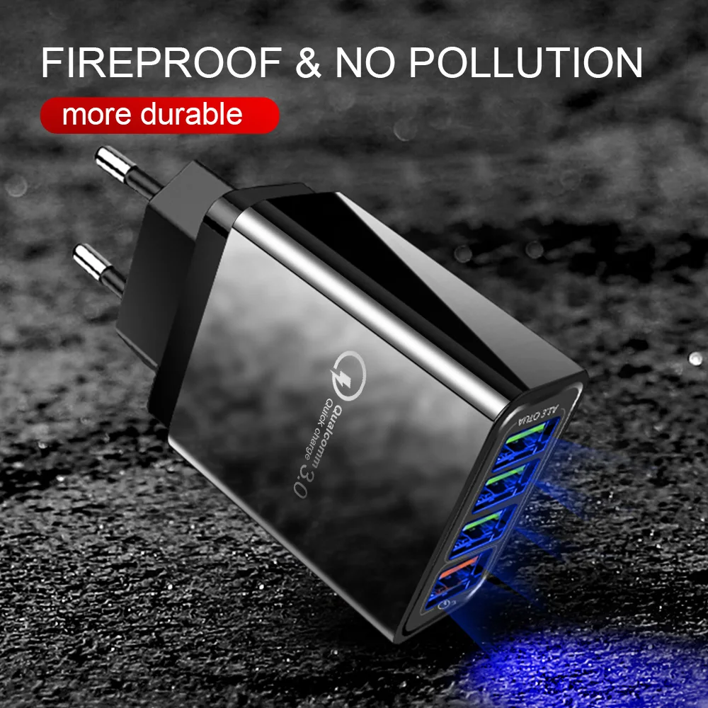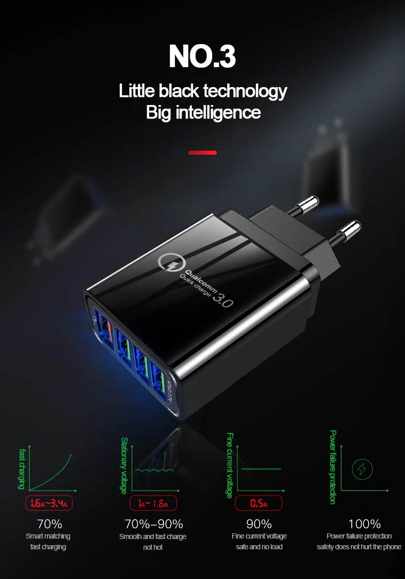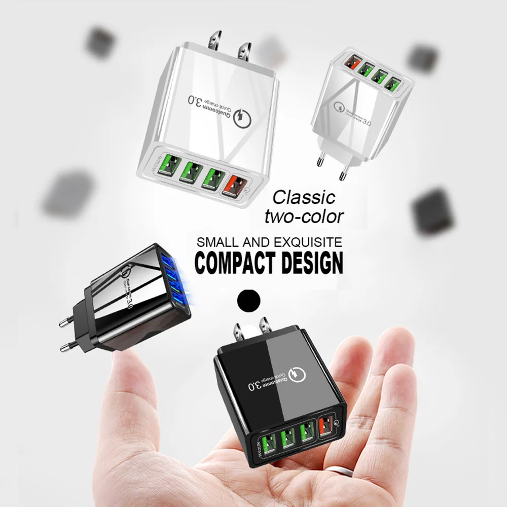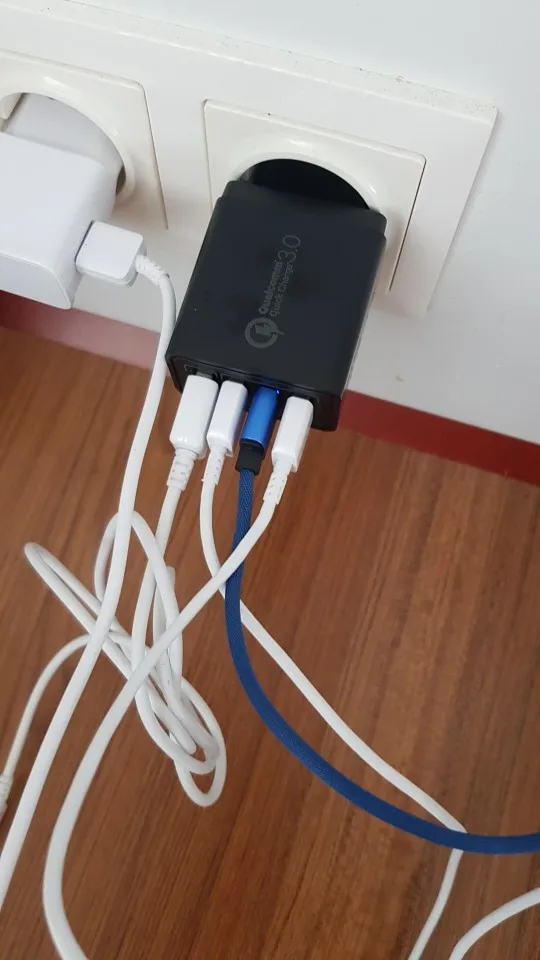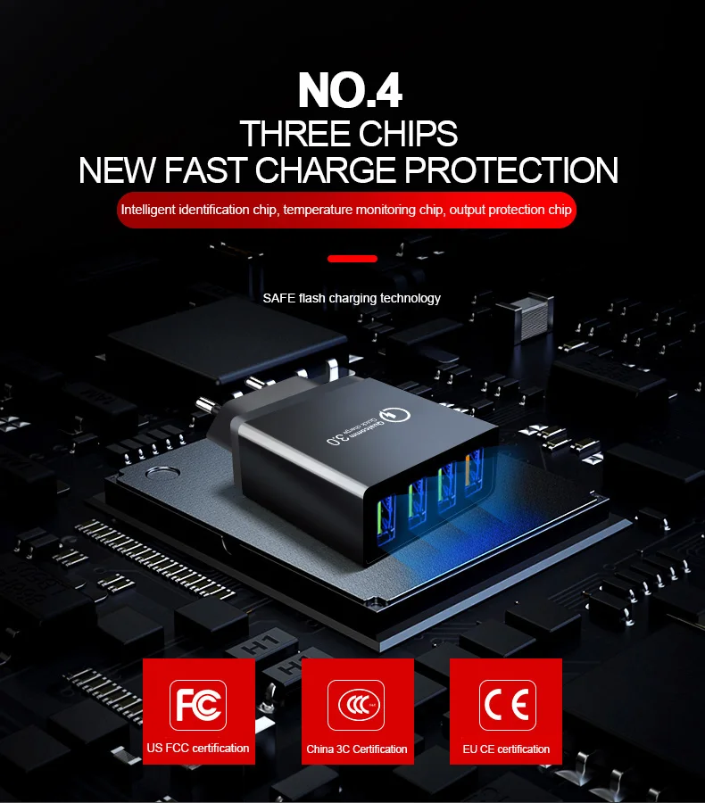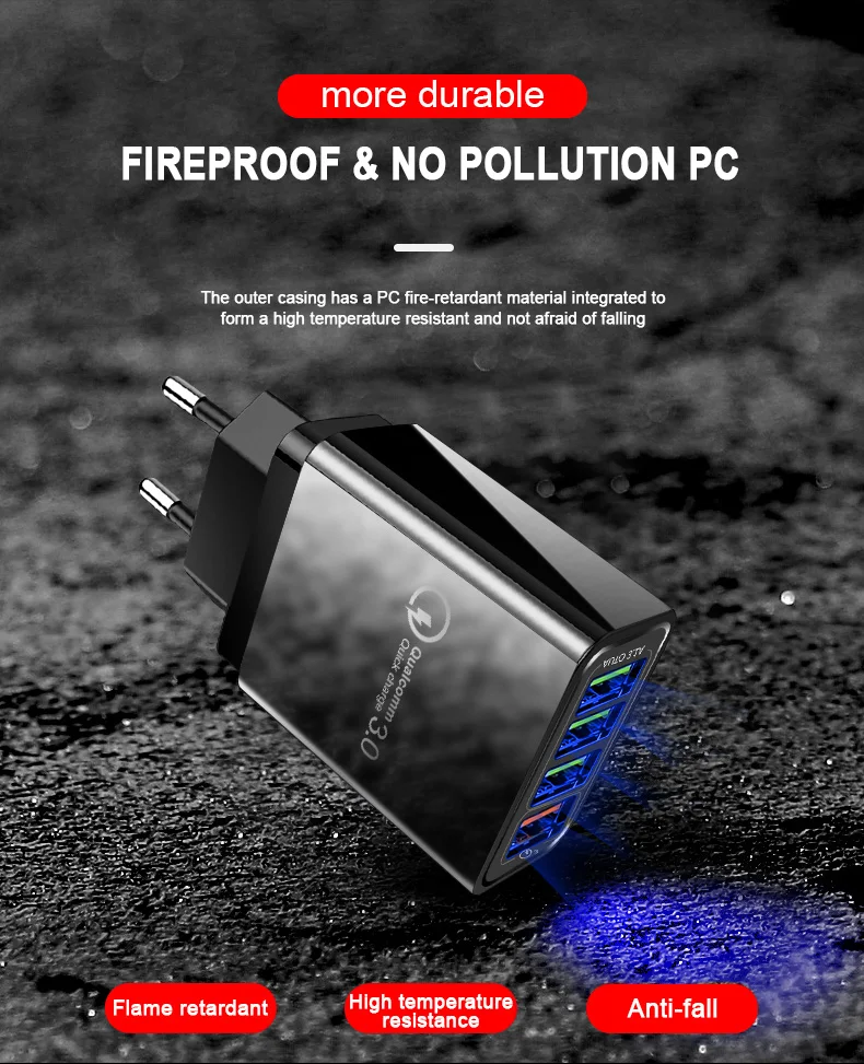 На самом деле Выход быстрой зарядки составляет 18 Вт, но добавляя ЧЕТЫРЕ s выход, если вы предоставляете 48 Вт, зарядное устройство имеет очень хорошее качество в его отделки