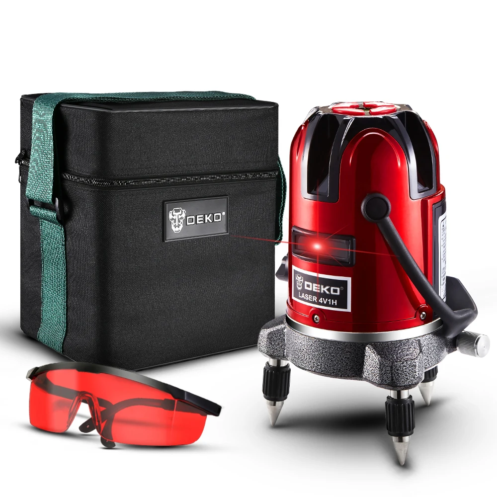 Лазерный уровень DEKO LL57RLL57R-T, 5 линий, 6 точек, красный лазер, самонивелирующийся, высокая видимость, точная Горизонтальная и вертикальная регулировка