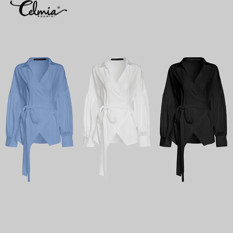 Блузка Celmia женская с рукавами-фонариками, модная короткая Облегающая рубашка с V-образным вырезом, пикантная офисная уличная одежда, весна-осень 2022