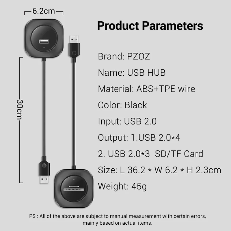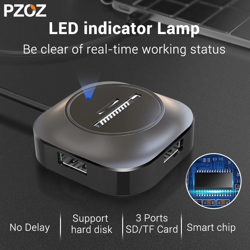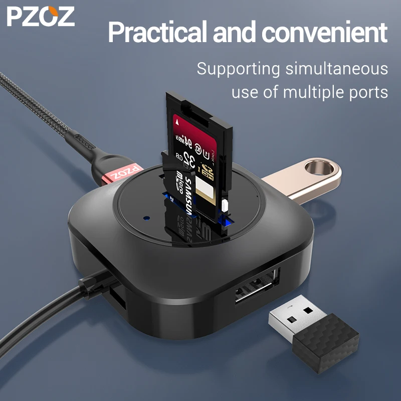 USB-адаптер PZOZ usb-хаб высокоскоростной, 2,0 устройство для чтения карт SD TF, все-в-одном, мульти-USB-адаптер для ПК, компьютера, USB-Сплиттер, аксессуары