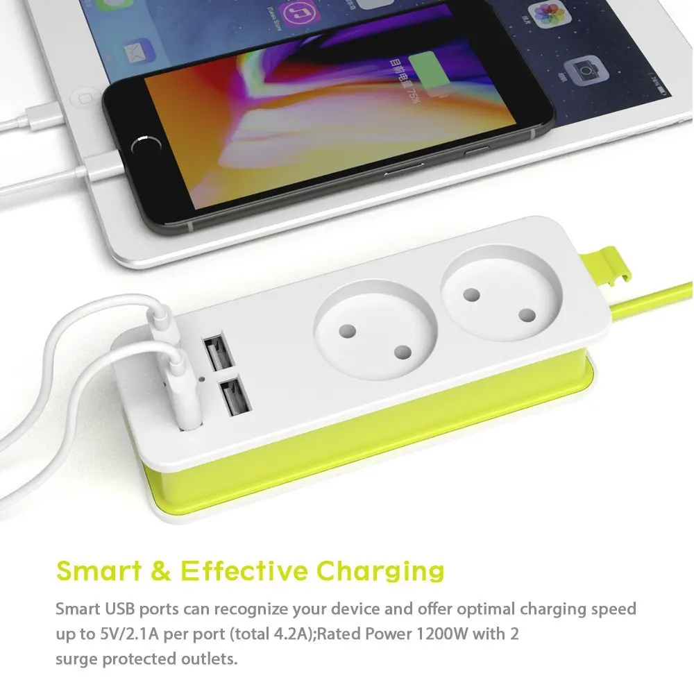 Полоса питания через 1/2 гнезда и 4 usb-порта. Выход 1200 Вт и 10 а также поддерживает быструю зарядку, 4 usb-порта для зарядки iPhone, iPad, планшета, смартфона, цифровой камеры и т. д. для всех устройств до 1200 Вт.