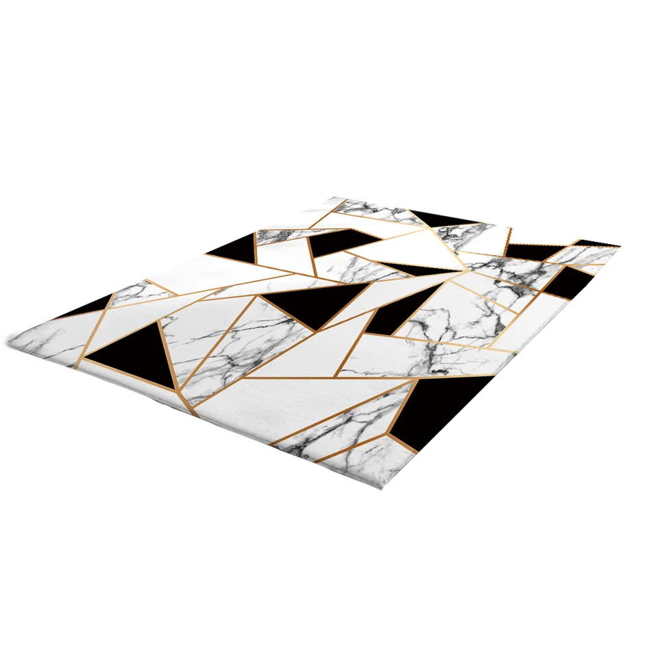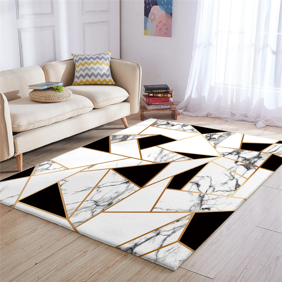 Ковры геометрической формы для гостиной, черно-белый центральный ковер с мраморной текстурой, напольный коврик