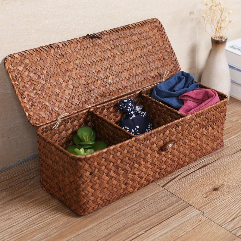 Ручная корзина для хранения с 3 ячейками и рамкой для управления освещением