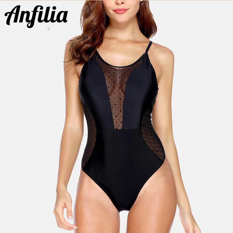 Женский цельный купальник Anfilia, глубокий v-образный вырез, в горошек, сексуальный купальник с открытой спиной, сетчатый винтажный Монокини, бикини