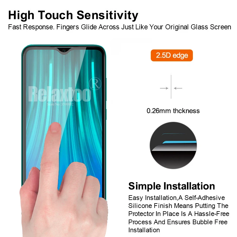 Features 32.5D 3D Full cover coverage Curved 0.3mm screen protector redmi note 8