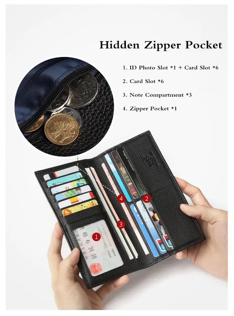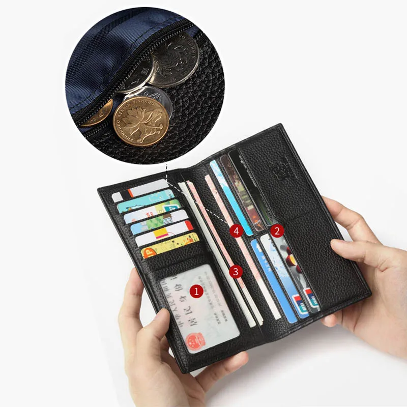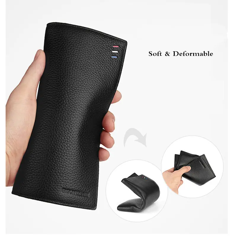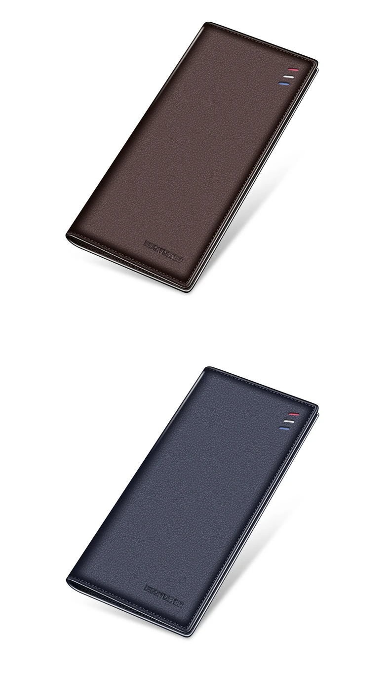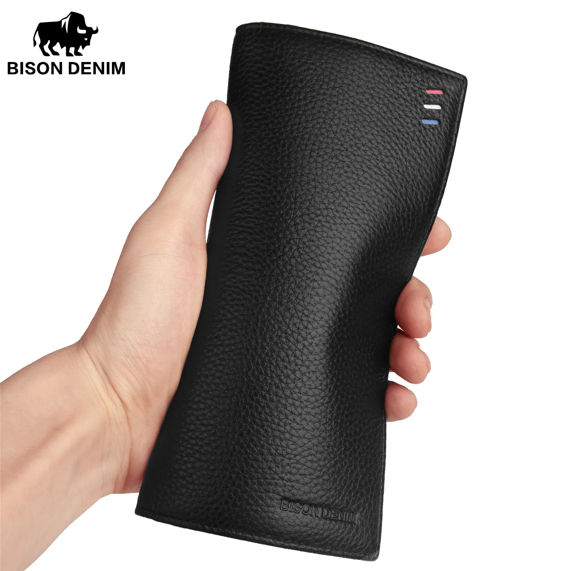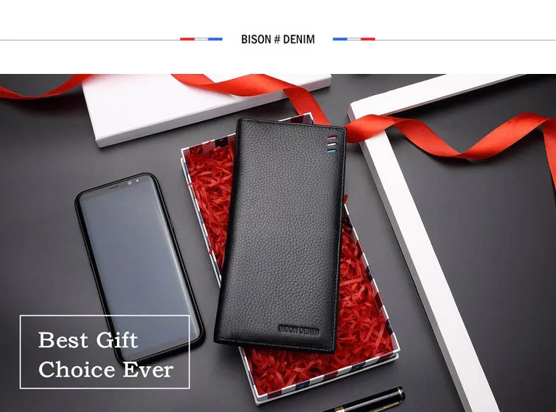 Мужской тонкий кошелек BISON DENIM, из натуральной коровьей кожи, Длинный кошелек, N4391-5