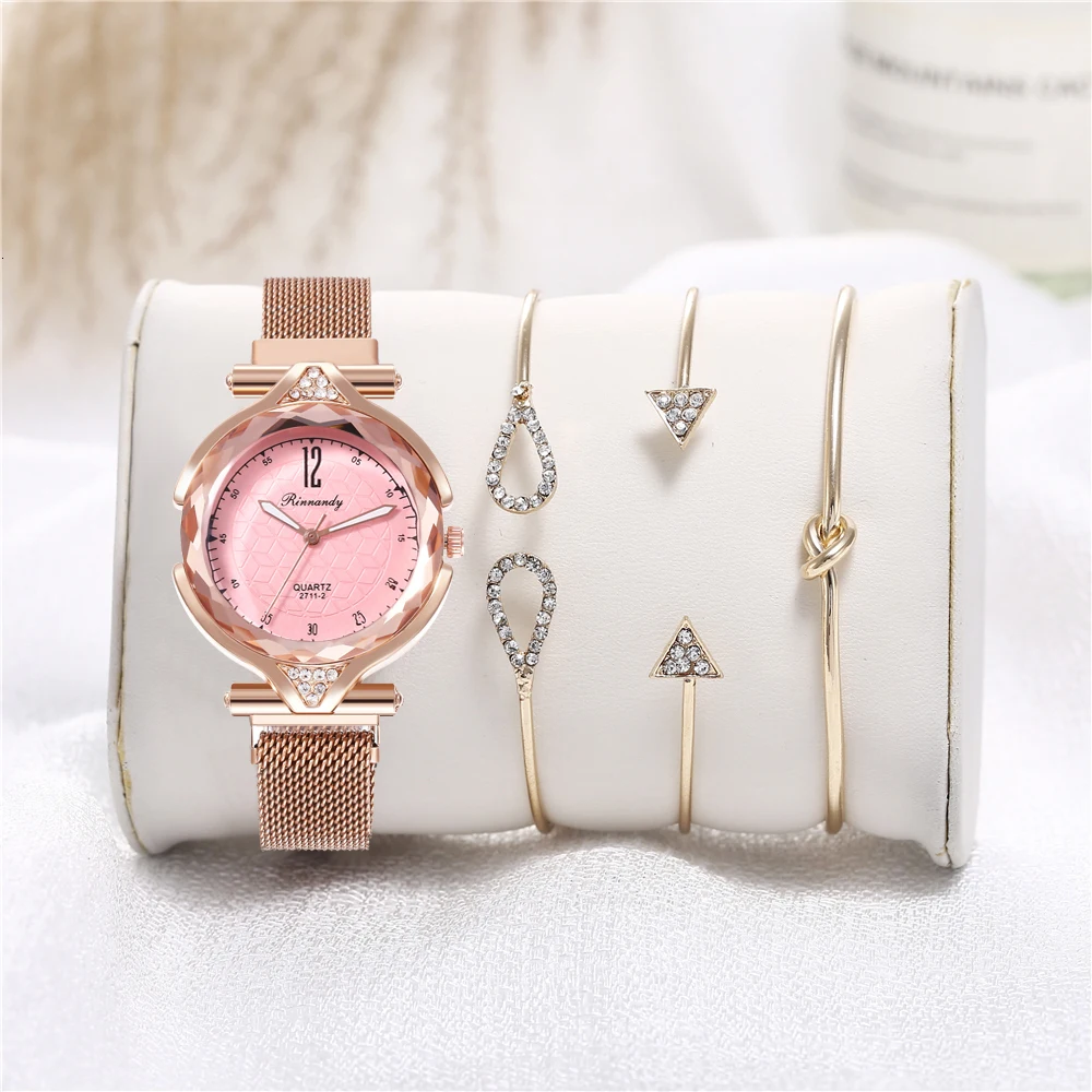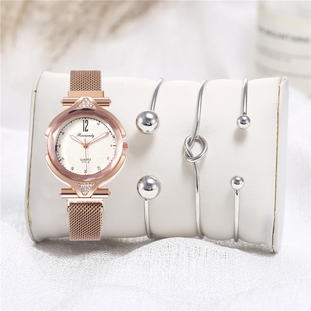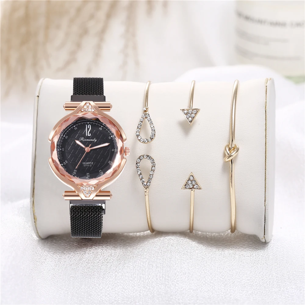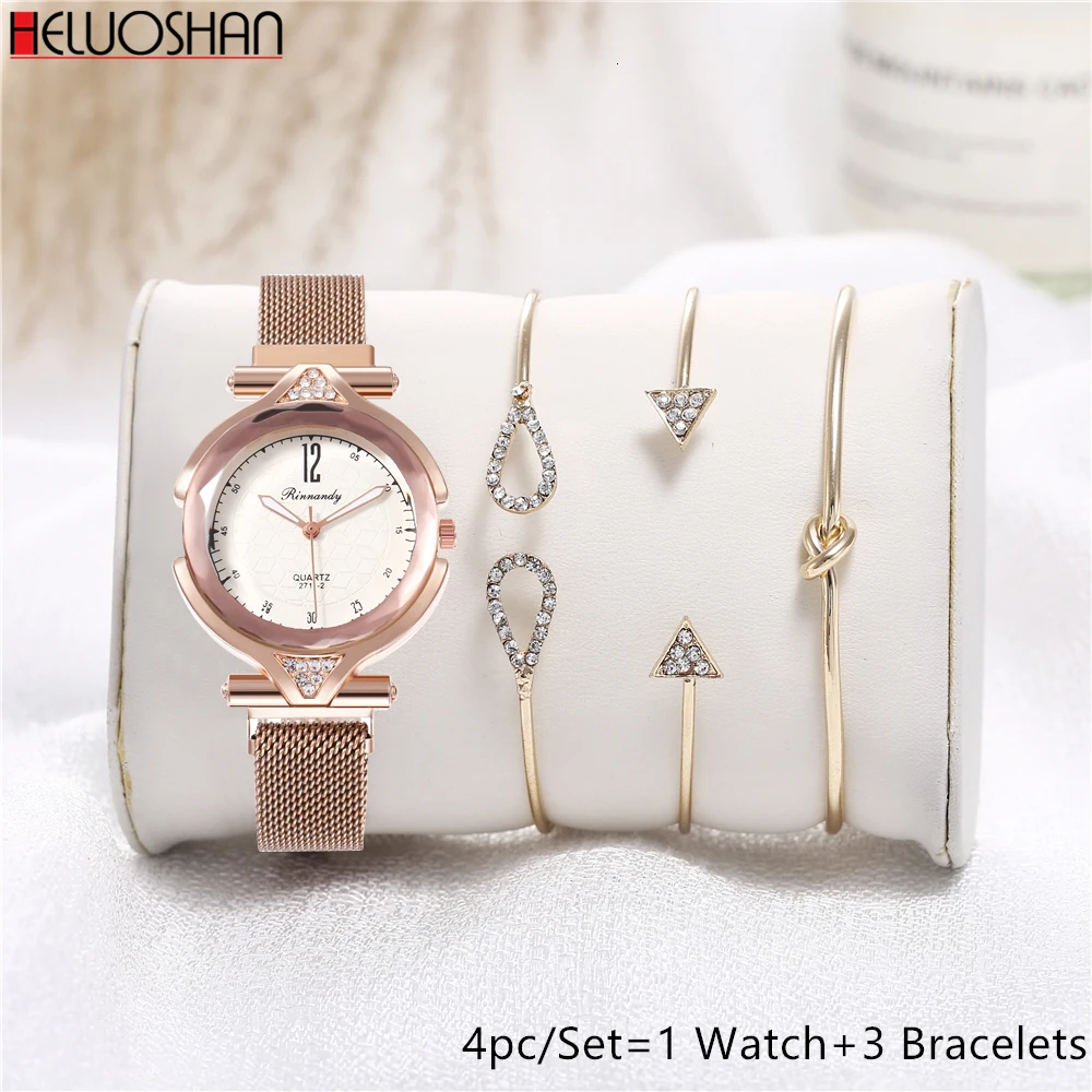 Часы женские кварцевые с магнитной застежкой, люксовые модные наручные, 4 шт.компл.