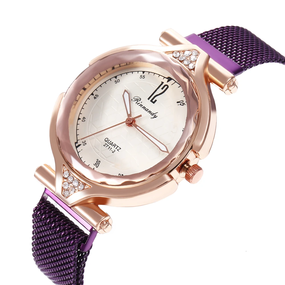 Роскошные сетчатые женские часы с магнитной пряжкой Звездная Бриллиантовая Геометрическая поверхность повседневные кварцевые наручные часы женские часы розовые часы
