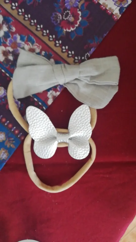 Резинка мягкая, легко тянется. Давить точно не будет. Нижний бантик вроде как на фото серый, в жизни зеленоватый. Остальные как на фото