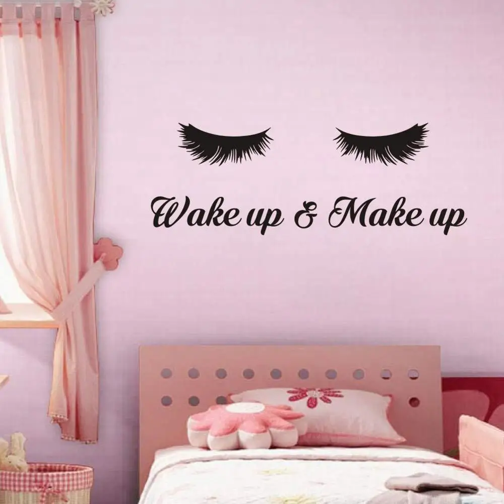 Wake Up Make Up Наклейка на стену модная Наклейка на стену для ресниц Женская Наклейка на стену для украшения спальни B220