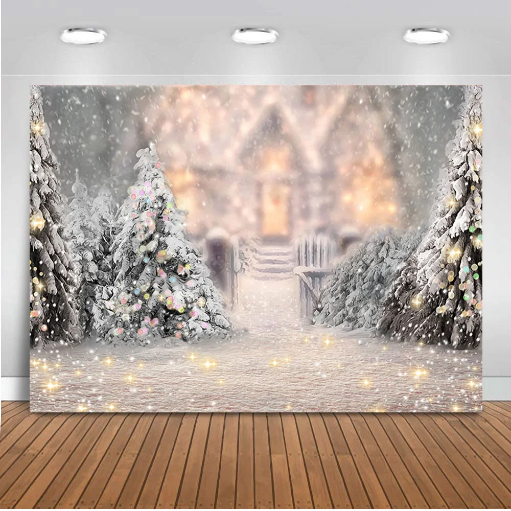 Рождественский фон для фотосъемки Снег Рождественские елки зимний п...
