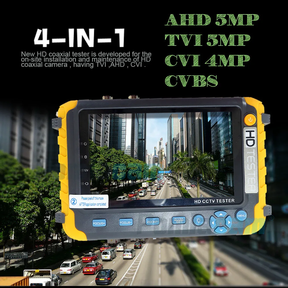 Новый HD коаксиальный тестер разработан для установки на месте и обслуживания HD коаксиальной камеры, имея TVI, AHD,CVI. Он также предоставляет множество полезных функций, таких как видеодисплей, Управление PTZ, выходная мощность DC12V, аудио тест, генератор изображений, вход видеосигнала VGA, вход сигнала HDMI1.0, поиск данных RS485, тестирование кабеля, светодиодный светильник и т. Д.