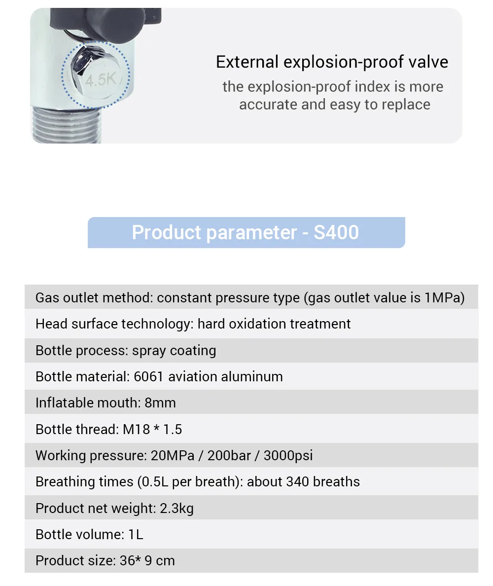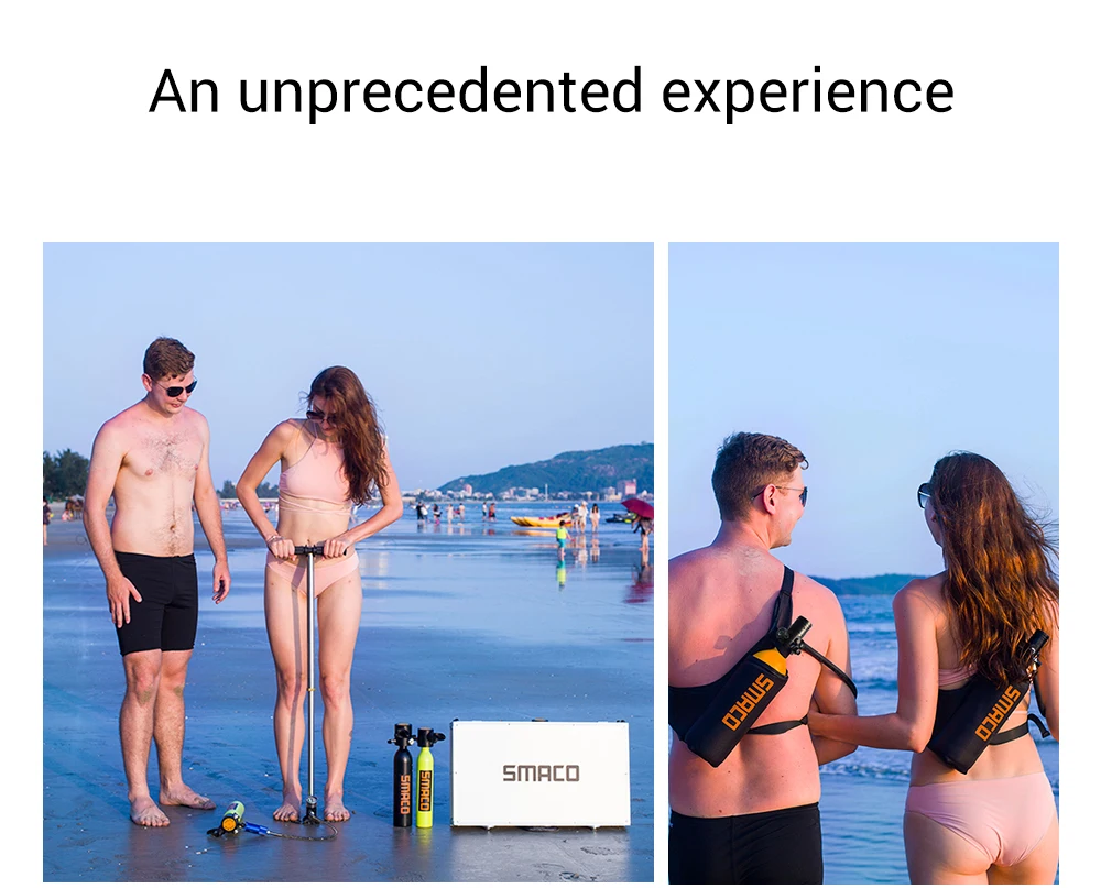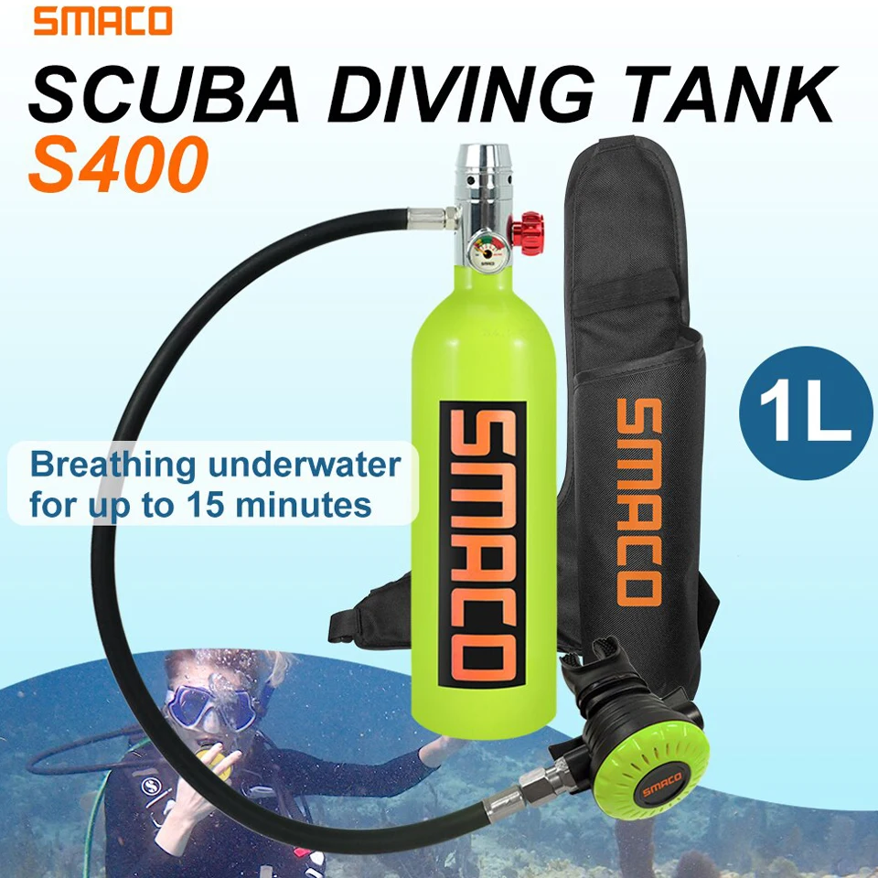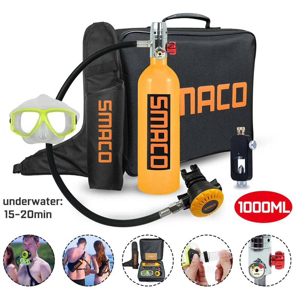 Бак для дайвинга имеет емкость 1л и используется для 340 подводных Дыханий с полной емкостью. Он используется для 15-20 минут погружения. Вес продукта составляет 5,07 фунтов, с портативной сумкой, вы можете легко носить с собой и освободить руки, чтобы сделать больше вещей под водой.