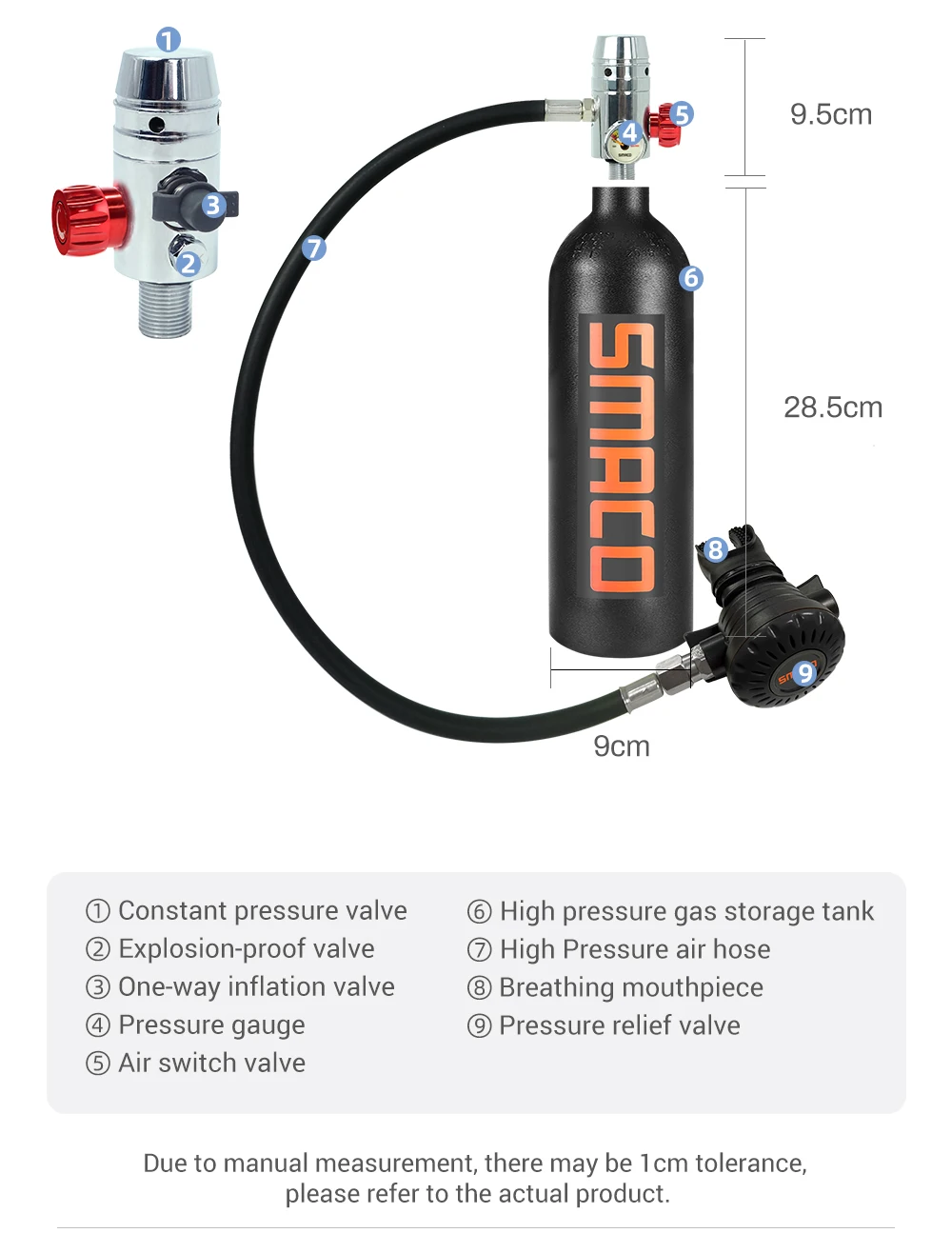SMACO scuba tank использует специфический многоразовый дизайн, чтобы избежать расхождения устройства, чтобы заполнить ваш бак. Кроме того, он оснащен манометром в реальном времени, чтобы делитель мог легко узнать время погружения, даже начинающий Дайвинг может использовать его безопасно.