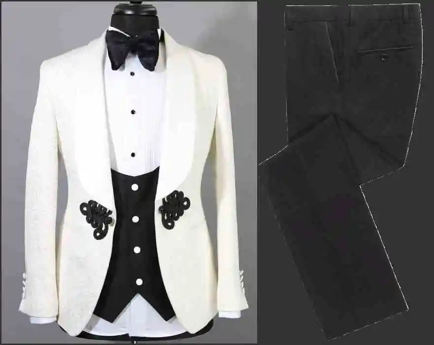 Смокинг для жениха с белым узором мужской, шаль с лацканами, 2 пред...