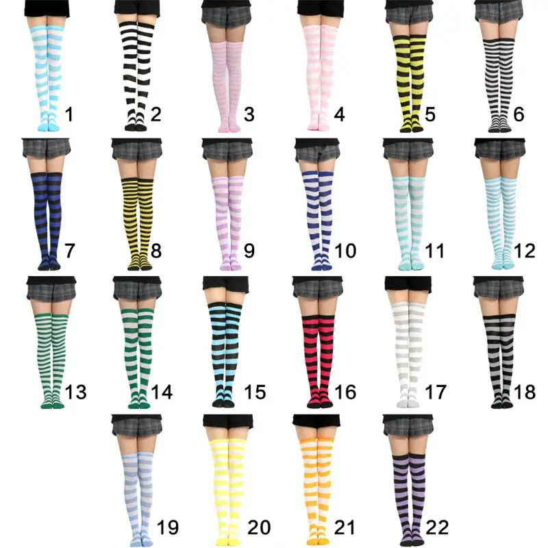 Для женщин девочек трикотажные Косплей Длинные полосы контрастных цветов выше колена бедра высокие чулки нарядное платье костюм на Хэллоуин