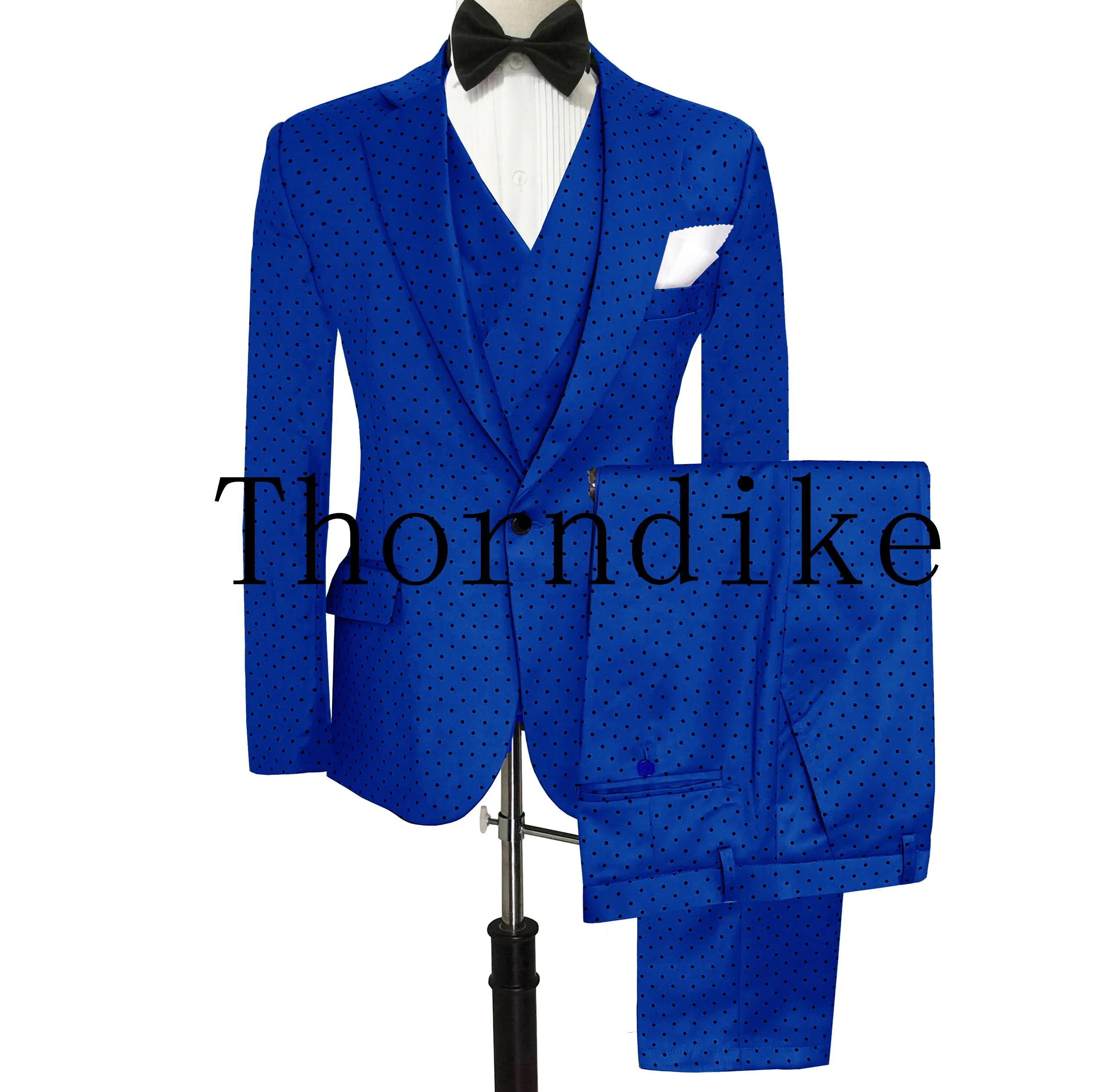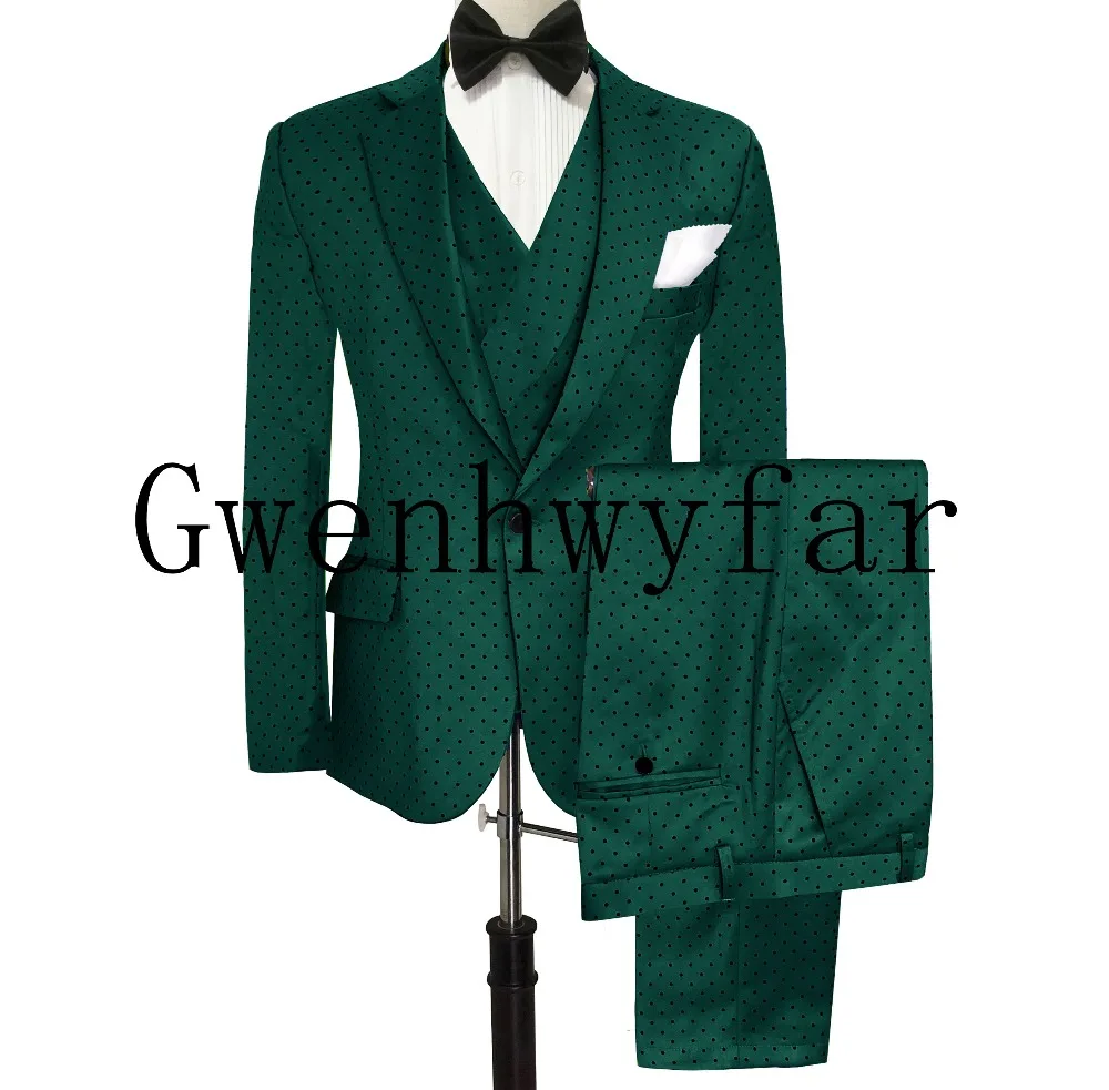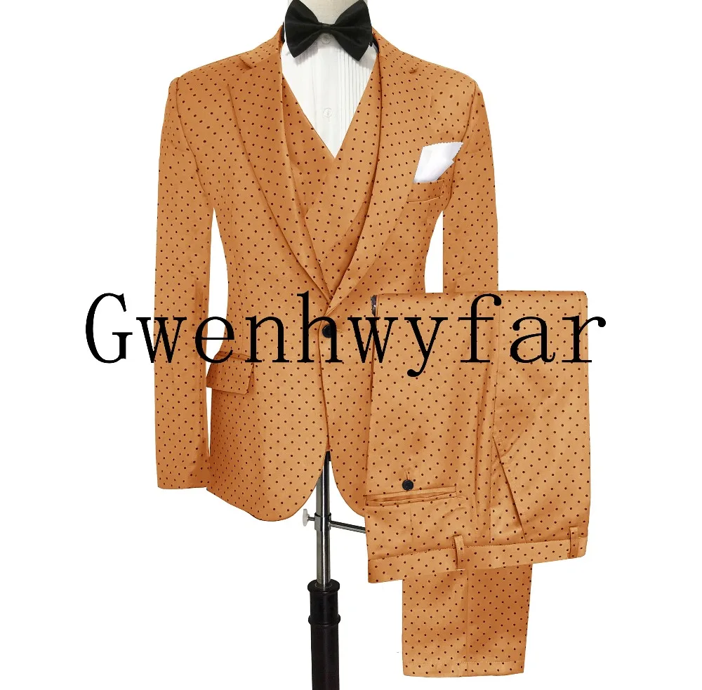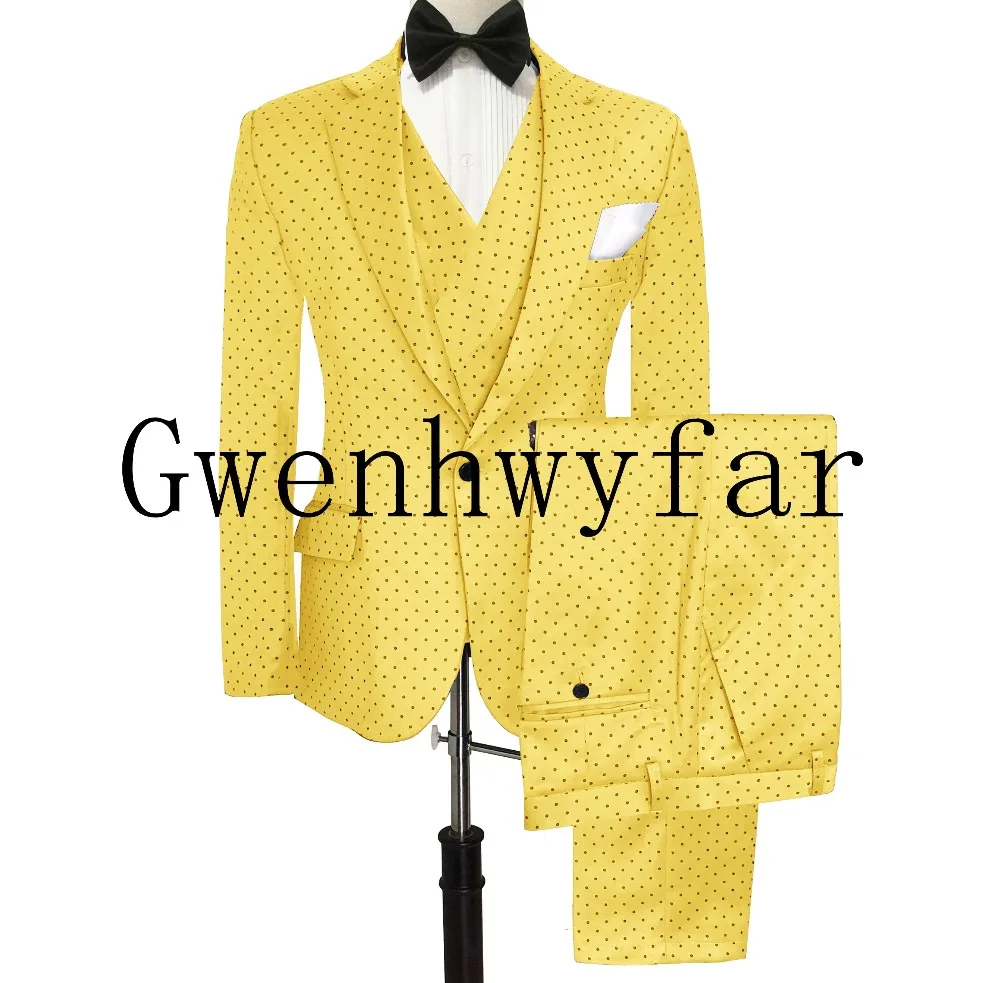 2019 мужской костюм в горошек, из трех предметов, смокинги с лацканами, для свадьбывечевечерние (Блейзер + жилет + брюки)