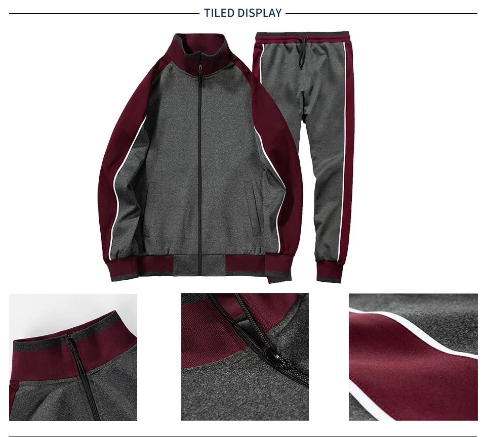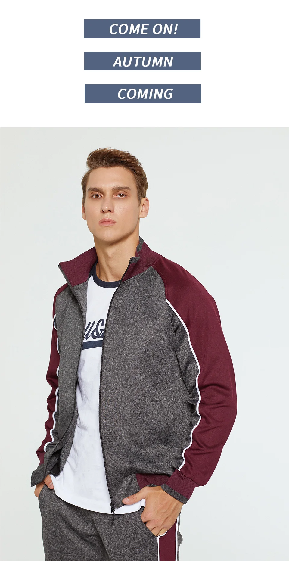 Мужской спортивный костюм, однотонный полосатый повседневный костюм...