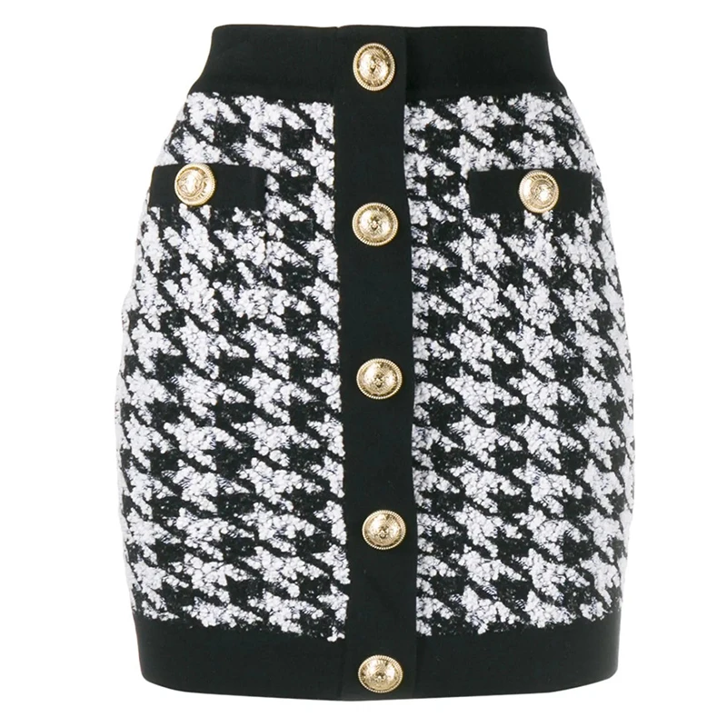 Высококачественная Новинка 2021 дизайнерская юбка женская твидовая мини-юбка с пуговицами со львом