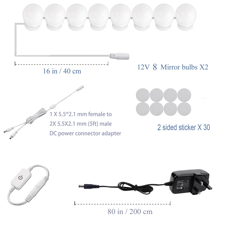 Голливудский Светодиодный светильник: X6/10/14/16Умный сенсорный диммер: X1Адаптер питания США: X1