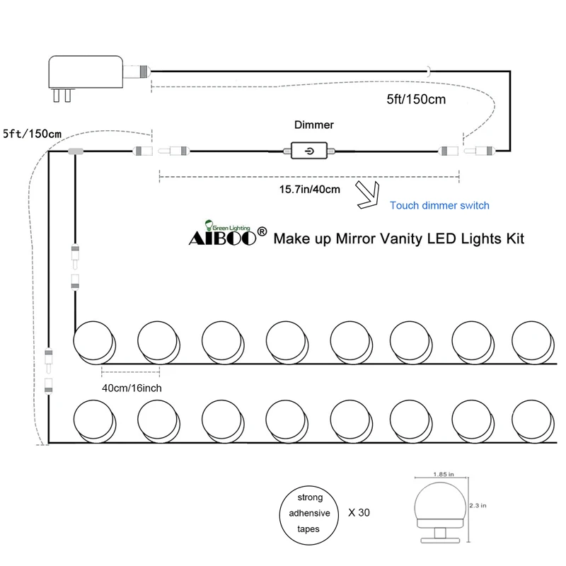 @ Сильная адхенсивная лента: с двухсторонними адхенсивными лентами лучшего качества, зеркальные огни будут крепиться плотно. 10 шт. больше наклеек, предоставленных в качестве резервного копирования, чехол для перемещения косметического освещения в новое место.