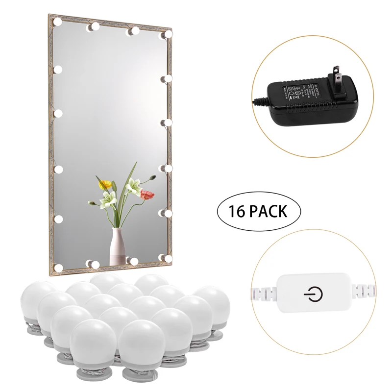 Светильник AIBOO для зеркала в голливудском стиле, светодиодная осветительная полоса для туалетного столика, 16 лампочек с регулируемой яркостью