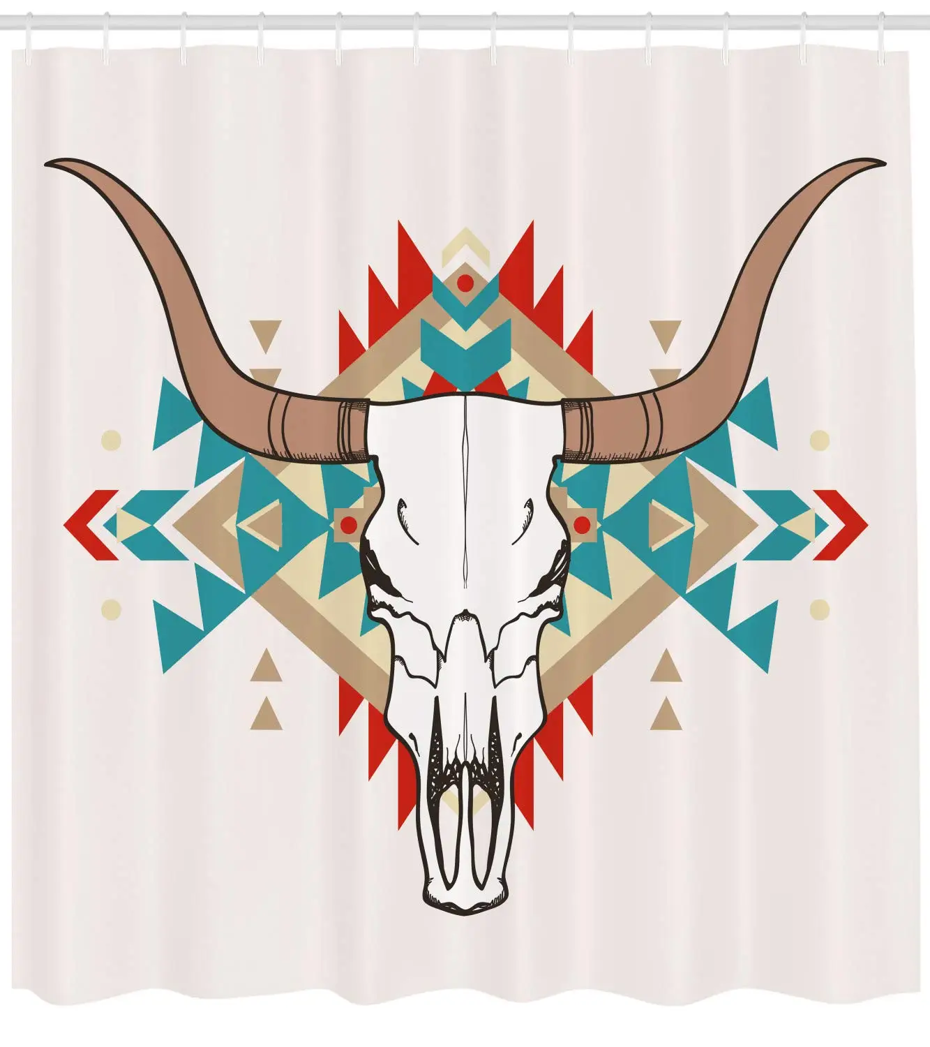 Западной душ Шторы Bull Череп иллюстрация с этническим орнаментом Племенной геометрический, ацтекский Стиль ткань Ванная комната Декор для ванной комнаты