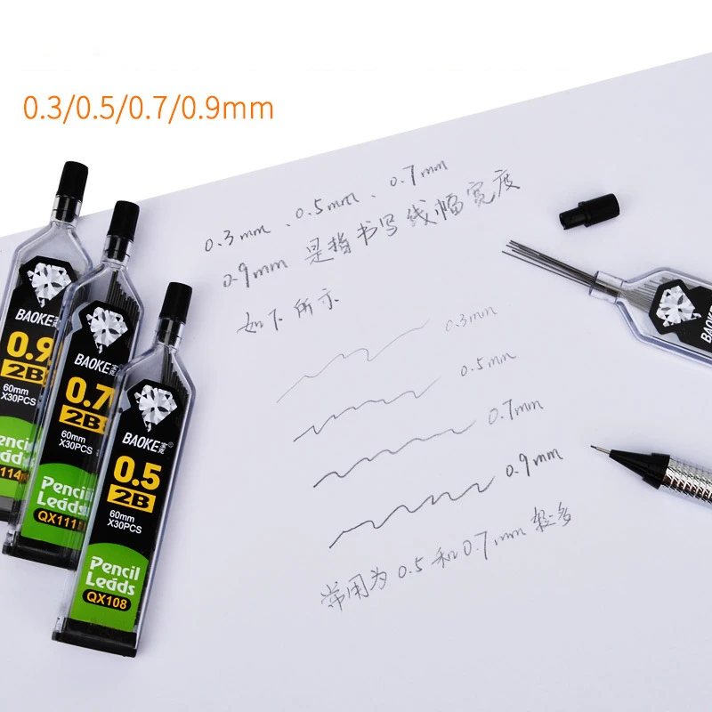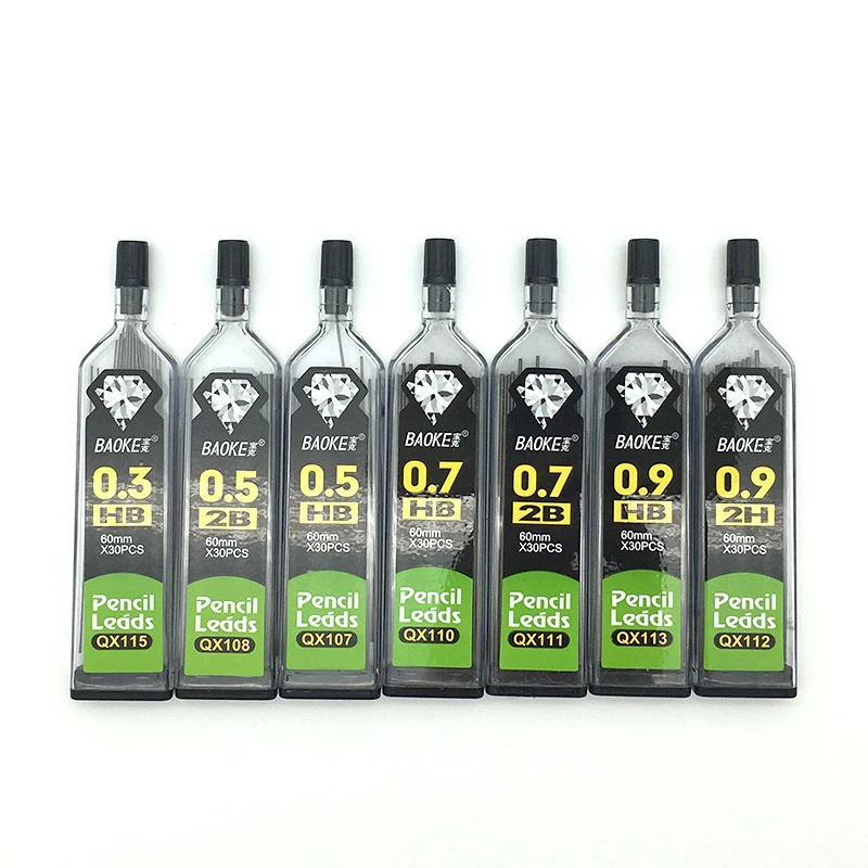 Трубчатые грифели для механического карандаша 2B HB, 0,3 мм, 0,5 мм, 0,7 мм, 0,9 мм, 2H, 30 шт.