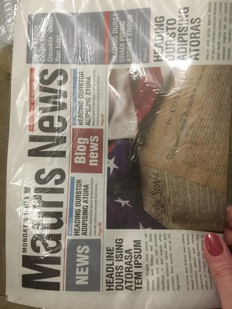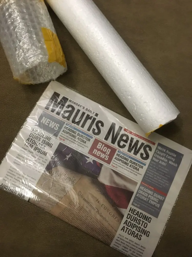 Доставка до Москвы две недели, газеты очень крутые и качественные, для фото просто шикарно. Упакованы были очень надёжно намотанной на цилиндр пенопласта и обёрнуты несколькими пупырками
