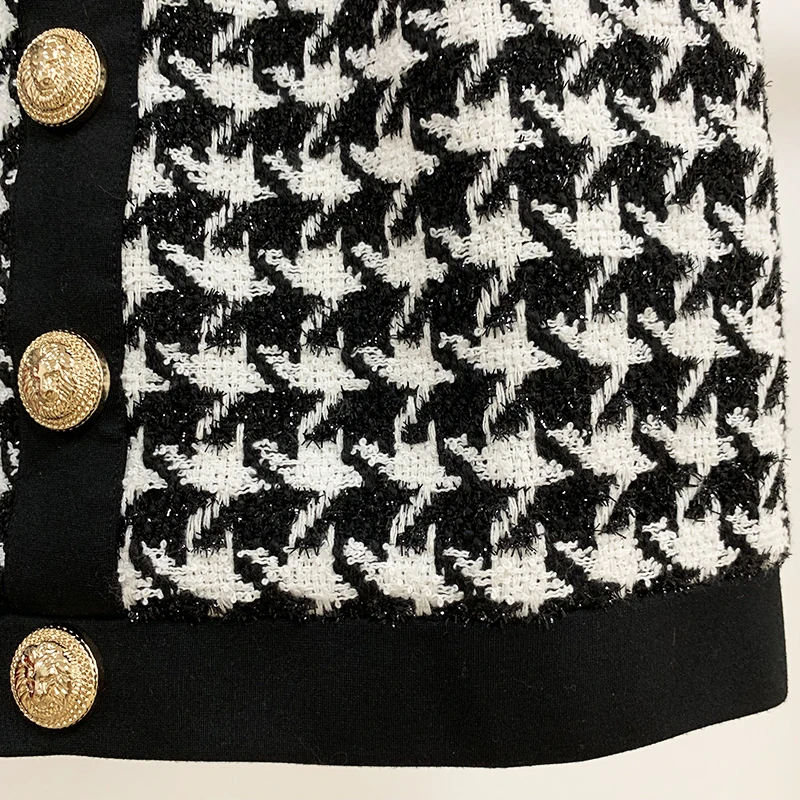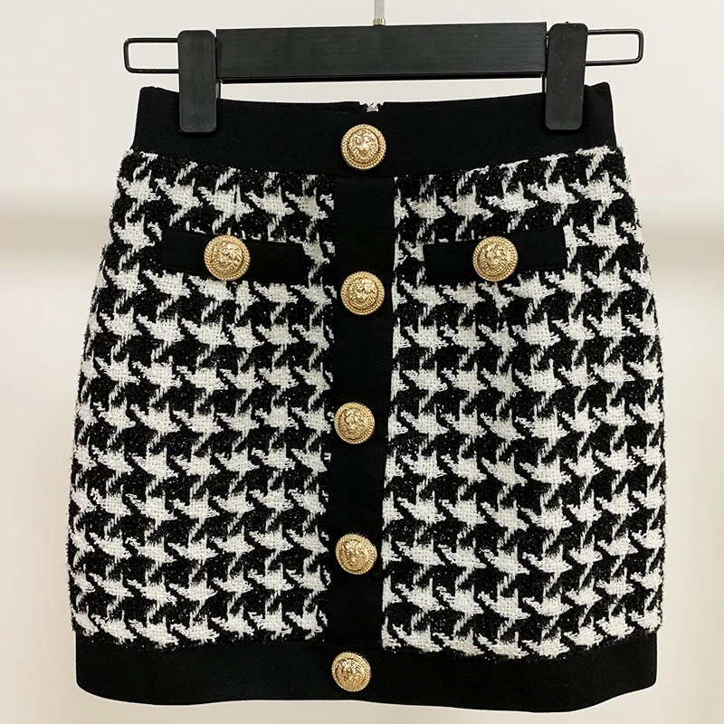 Новинка 2021, Стильная дизайнерская женская пикантная твидовая юбка с металлическими пуговицами и орнаментом гусиные лапки