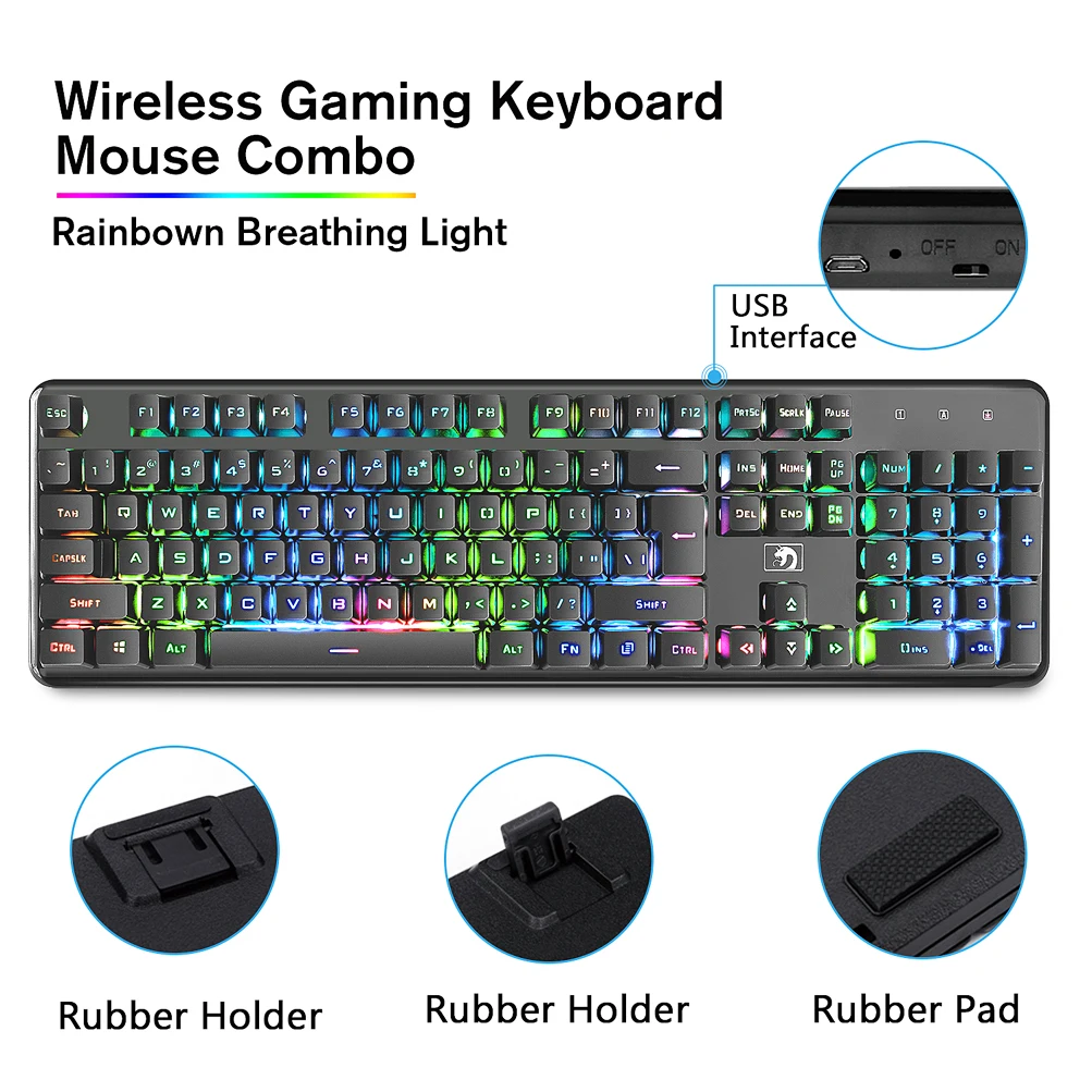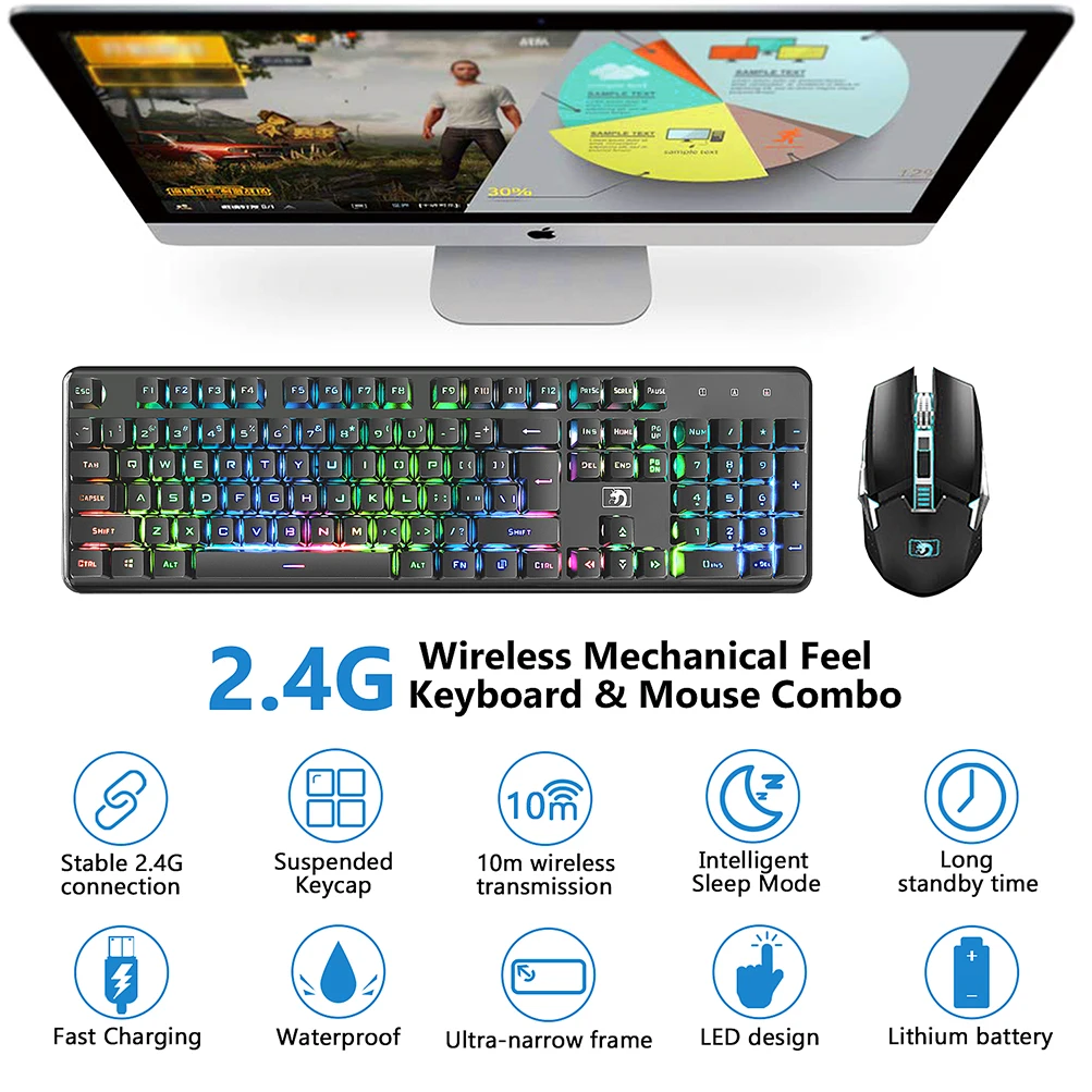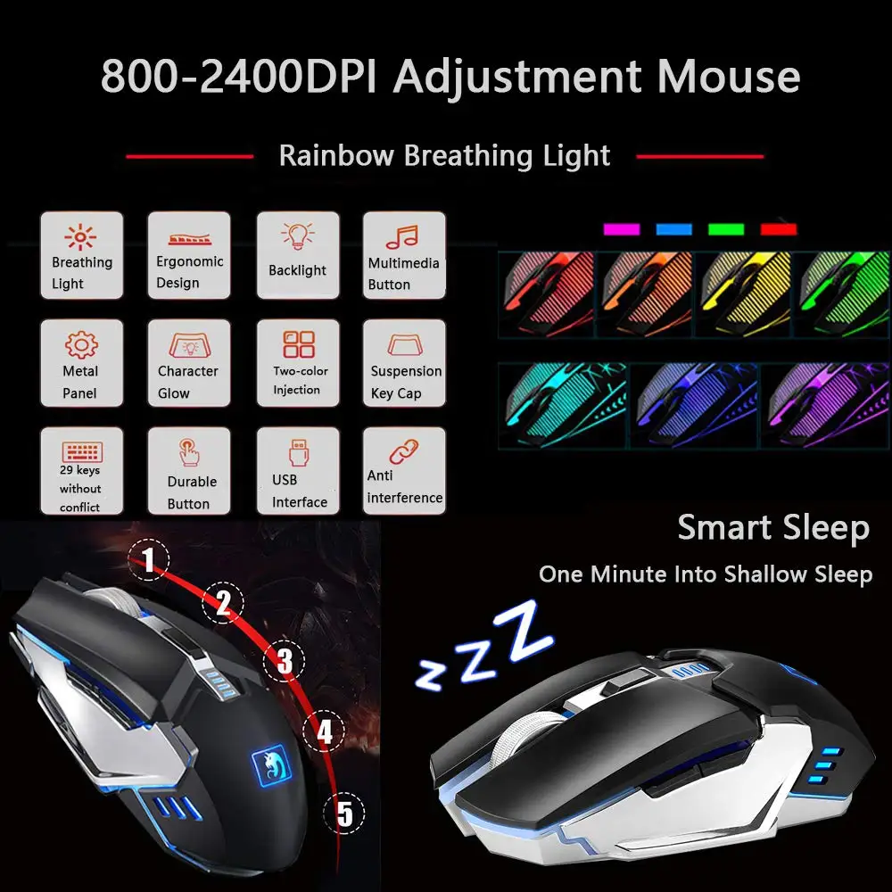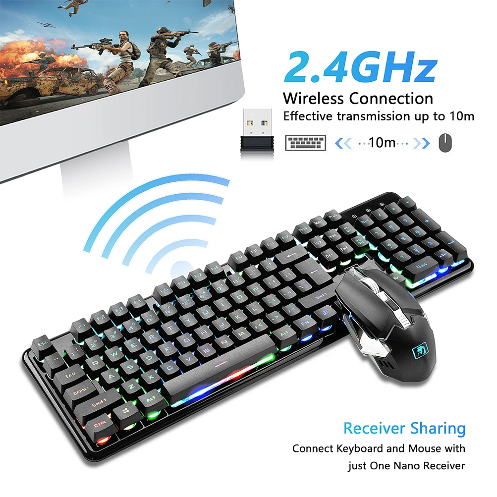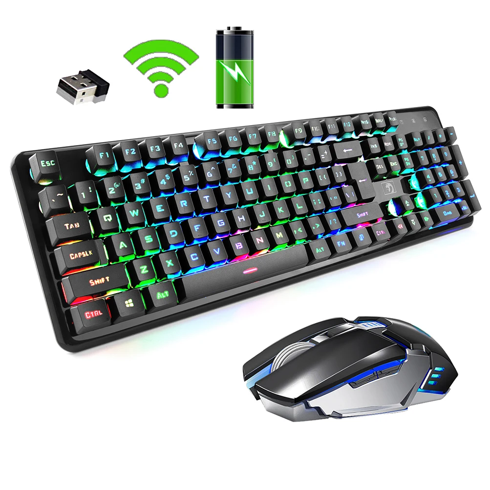 Беспроводная игровая перезаряжаемая Беспроводная механическая клавиатура и мышь игровой набор комбо стандарт для компьютерных игр