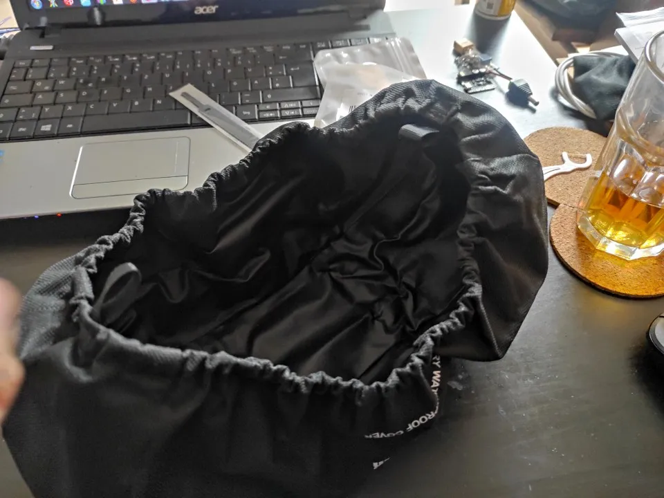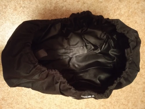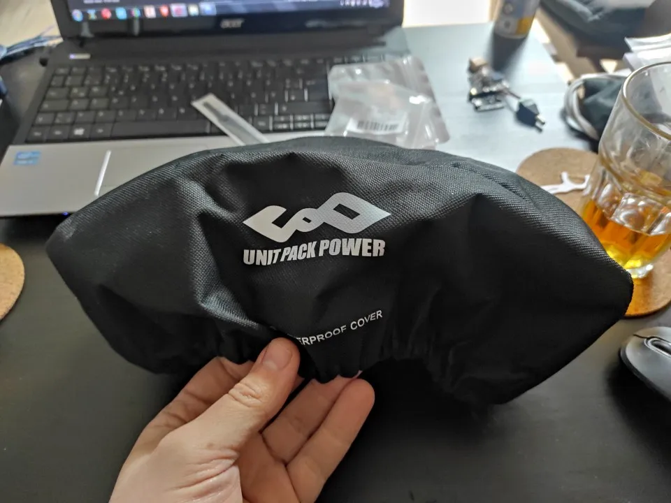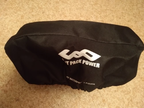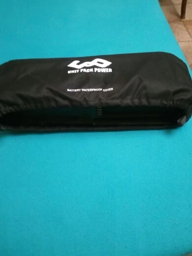 Чехол идеально адаптирован к аккумулятору, хорошего качества, и видно, что он хорошо защищает от погоды. Единственное, что он не оставляет места для кабеля, а дно не заканчивается.