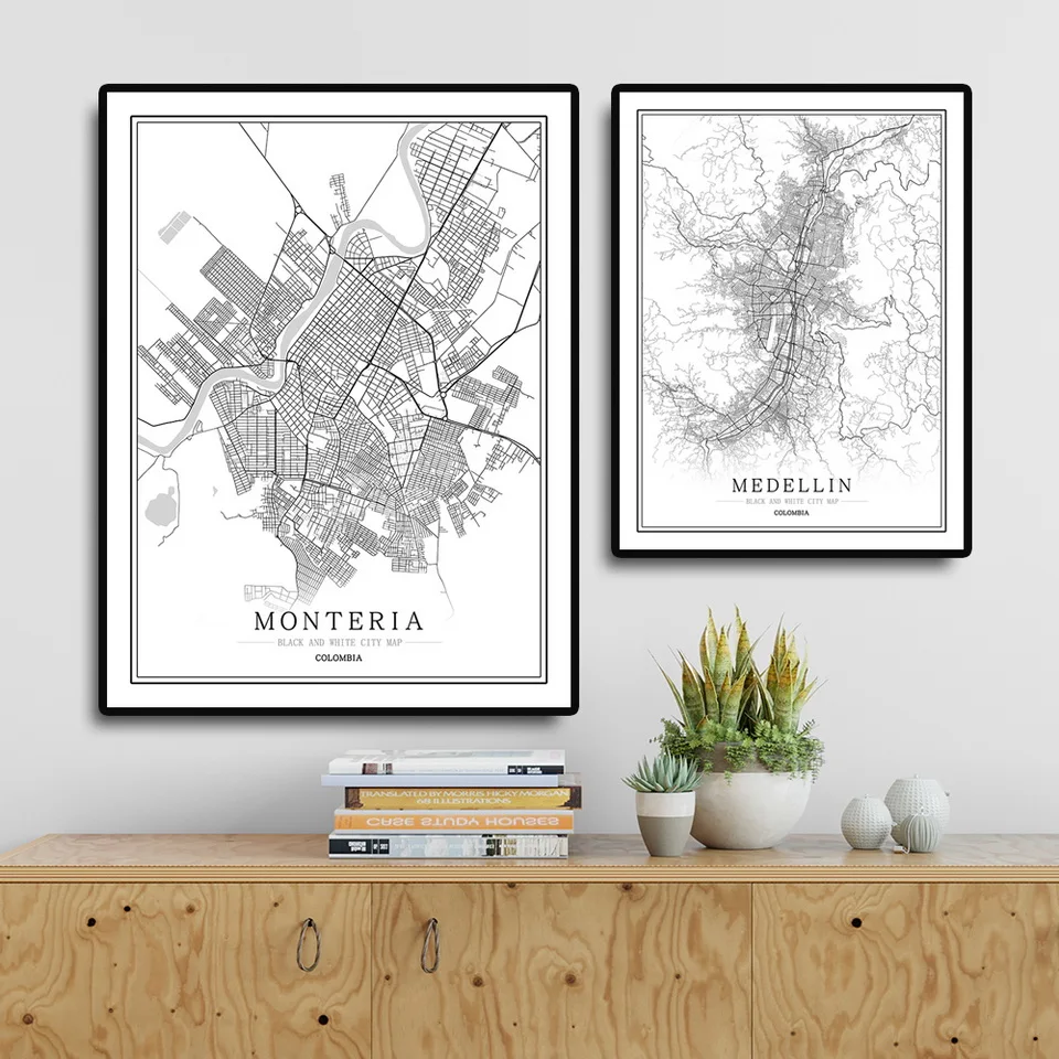 Креативная Карта города, Богота, Абстрактная Картина на холсте, черно-белая Настенная картина, Постер, картина, украшение для дома