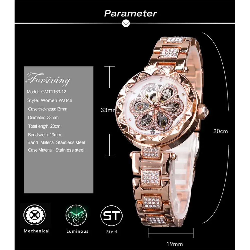 Часы наручные Forsining женские, модные брендовые автоматические водонепроницаемые светящиеся с бриллиантами