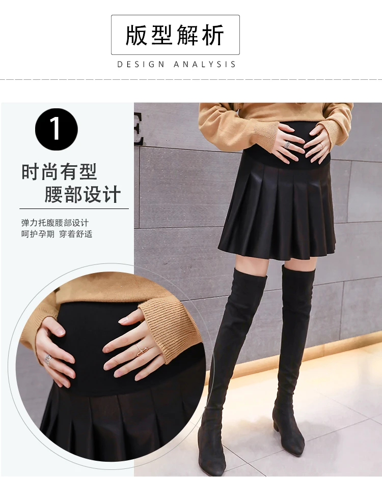 Юбка для беременных женщин средней длины новая осенне-зимняя одежда для мам Свободная юбка с эффектом подтяжки живота плиссированная короткая юбка
