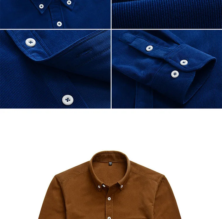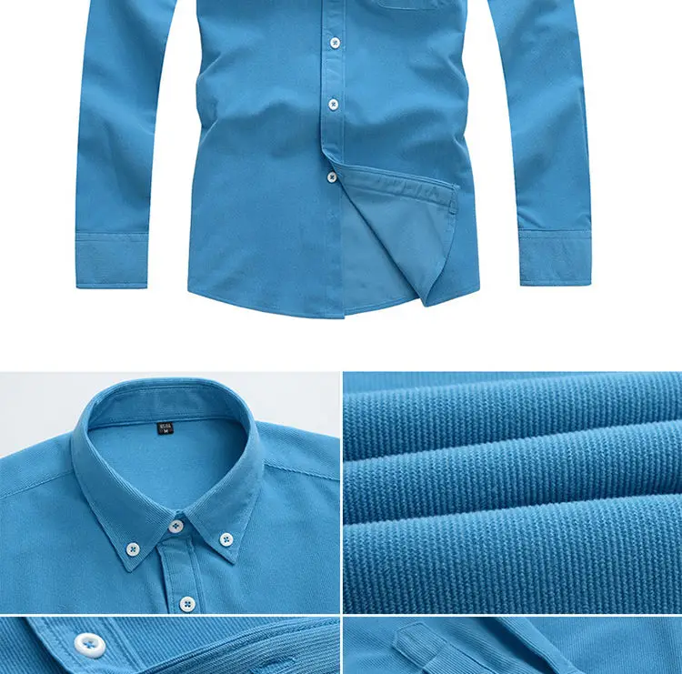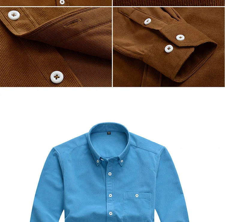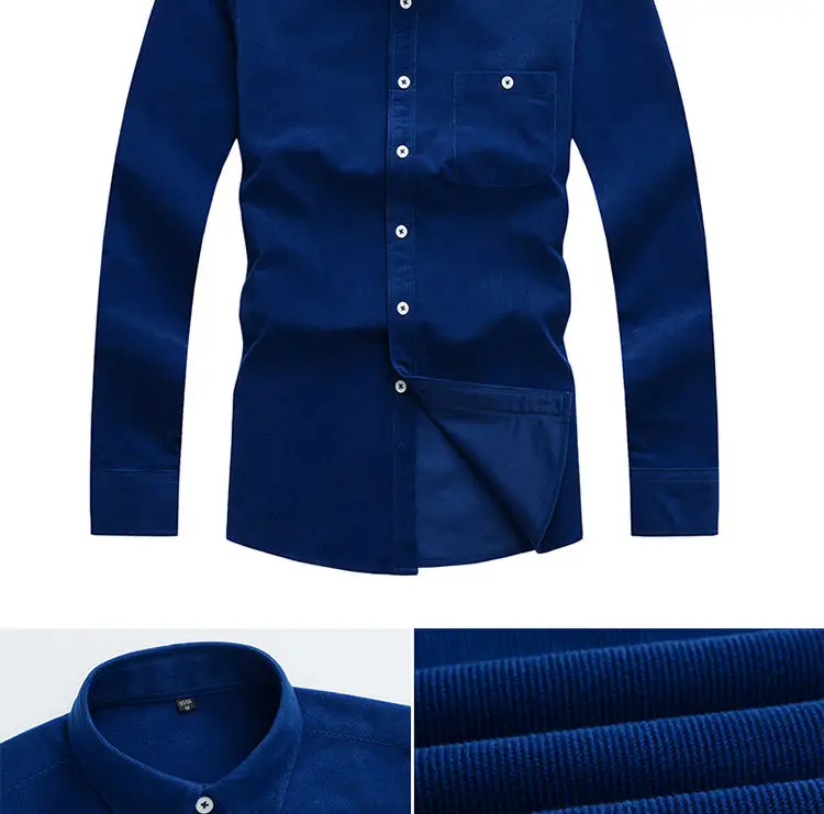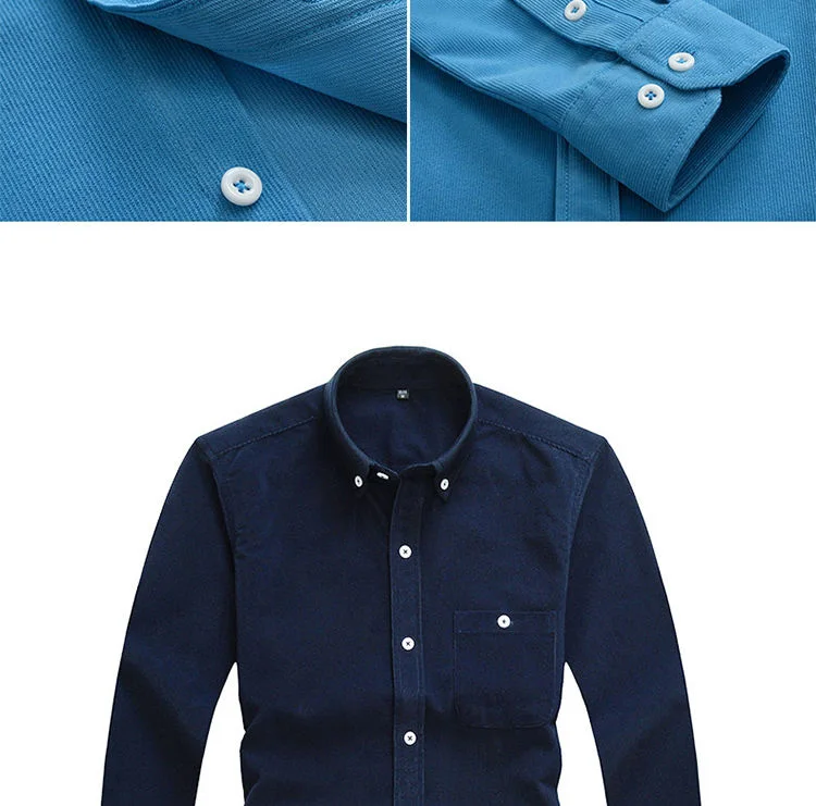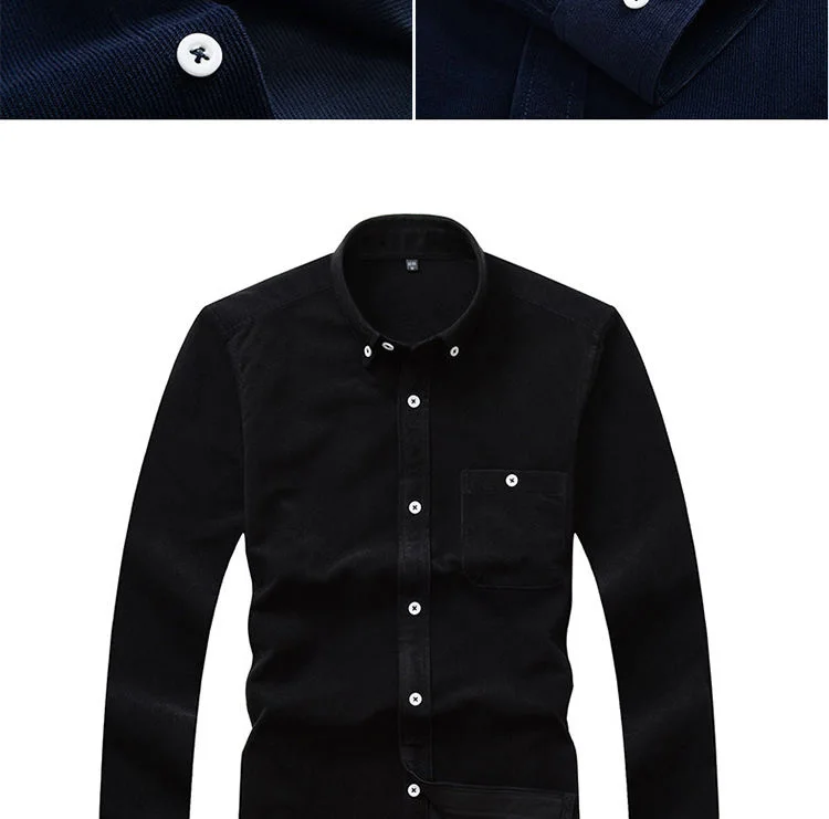 Рубашка мужская Вельветовая с длинным рукавом, Повседневная блуза кроя Slim Fit, хлопок, однотонная, белая, синяя, черная, весна-осень