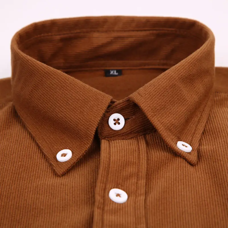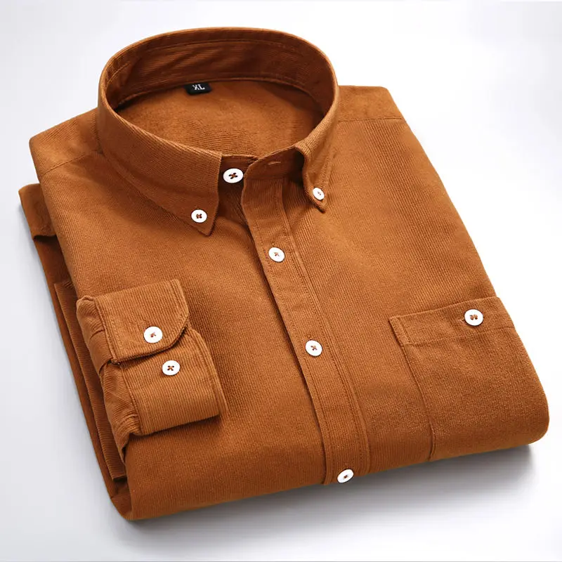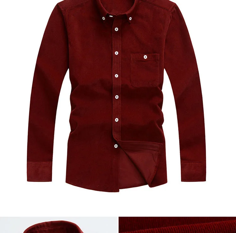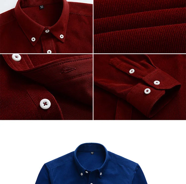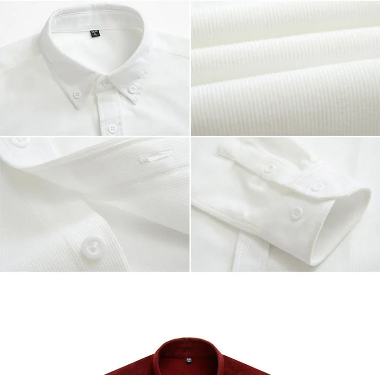 Рубашка мужская Вельветовая с длинным рукавом, Повседневная блуза кроя Slim Fit, хлопок, однотонная, белая, синяя, черная, весна-осень