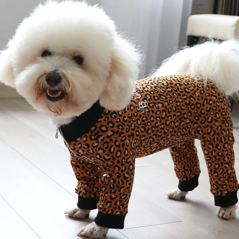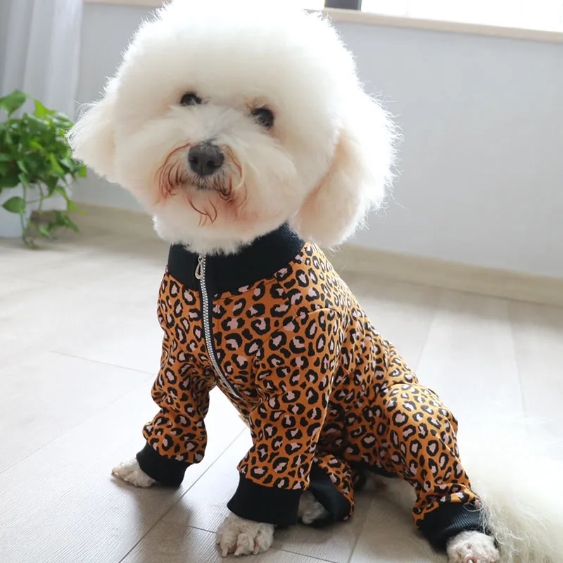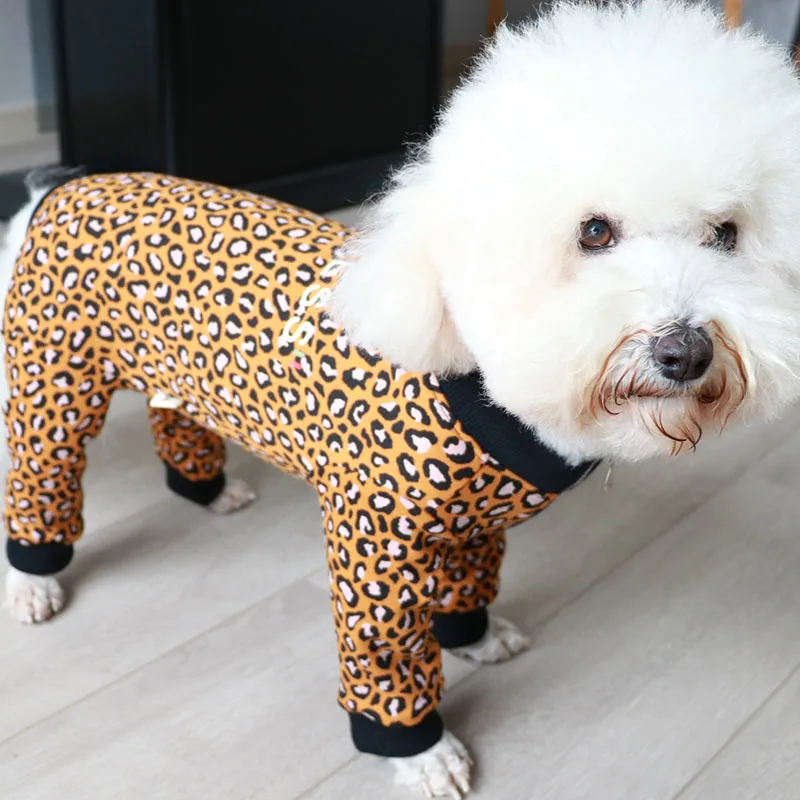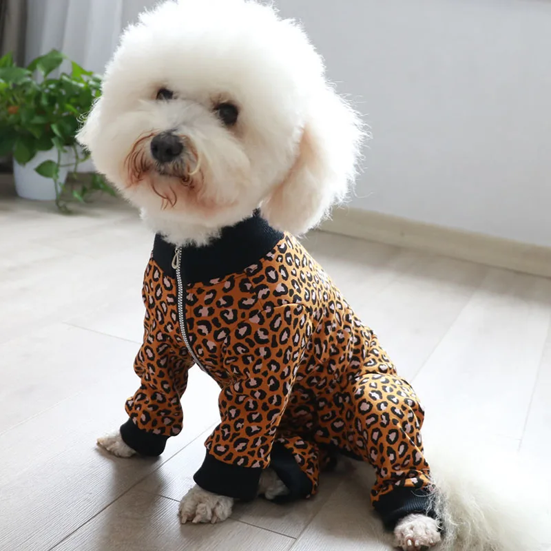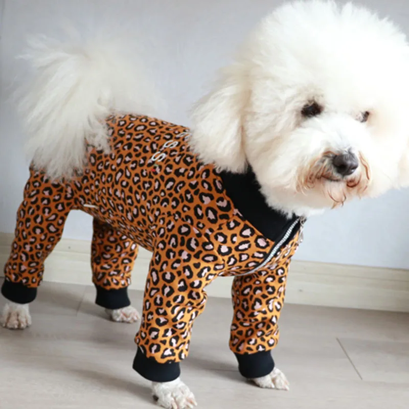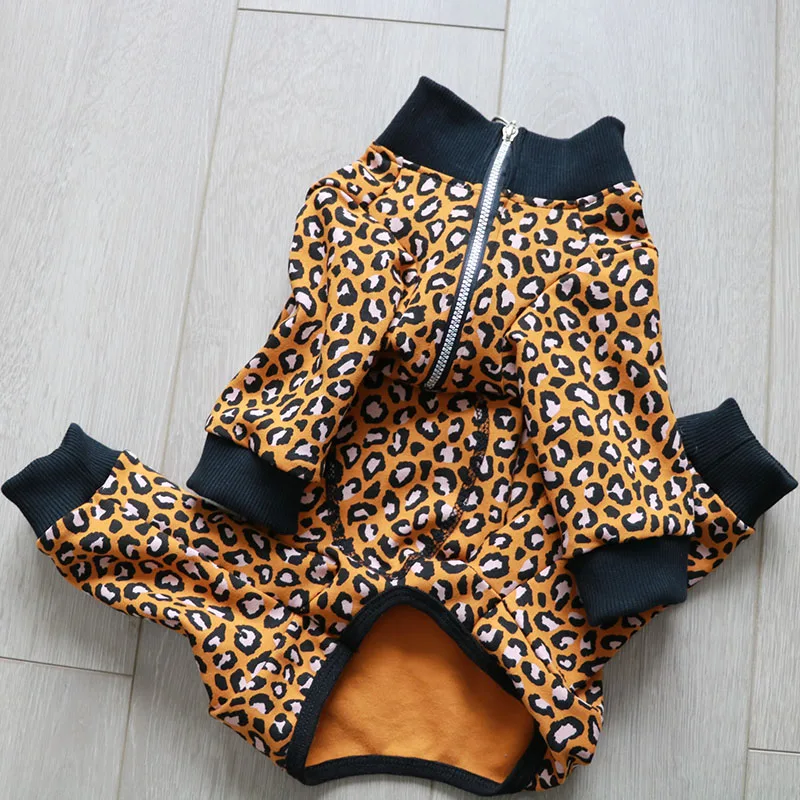 Комбинезон для собаки шерсть, 100% хлопок, комбинезон с леопардовым принтом, пижама для маленьких собак, чихуахуа, домашняя одежда