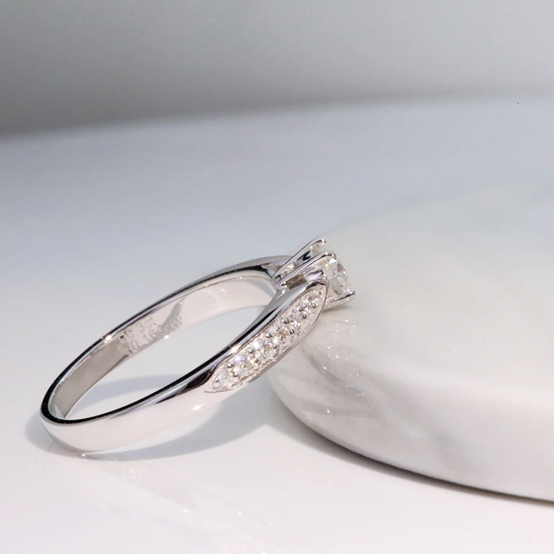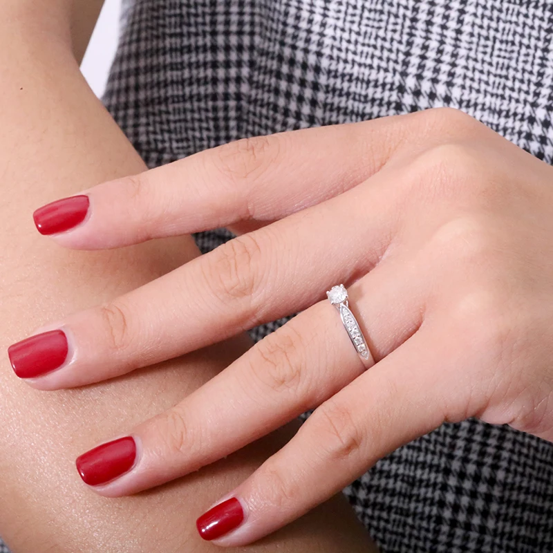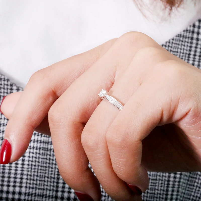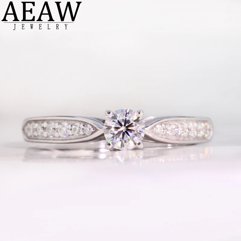 Кольцо AEAW посеребренное с муассанитом 14 к, белое золото, 4 мм, 0,3 карата, обручальное кольцо с бриллиантом юбилея