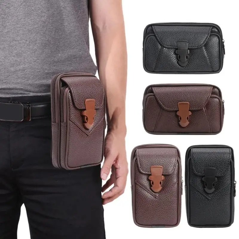 Модная Мужская поясная сумка из искусственной кожи, кошелек для денег, чистый цвет, на молнии, карман для телефона, военная сумка на молнии, сумка для монет