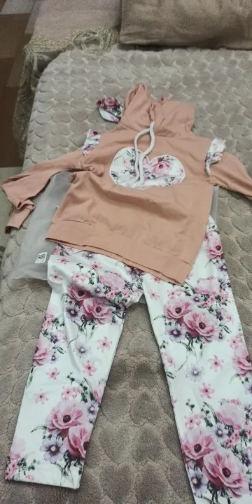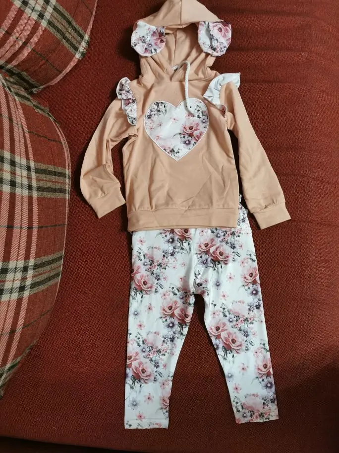 Полный комплект великолепен. Одна из лучших покупок на Ali. Брюки скользкие, хлопковая толстовка. Очень хорошее качество и красивая отделка. Я очень рад, красивые цвета и в целом представляет милый. Рекомендуется для любой девочки. На моем глазу размер 92 (маленький 98)