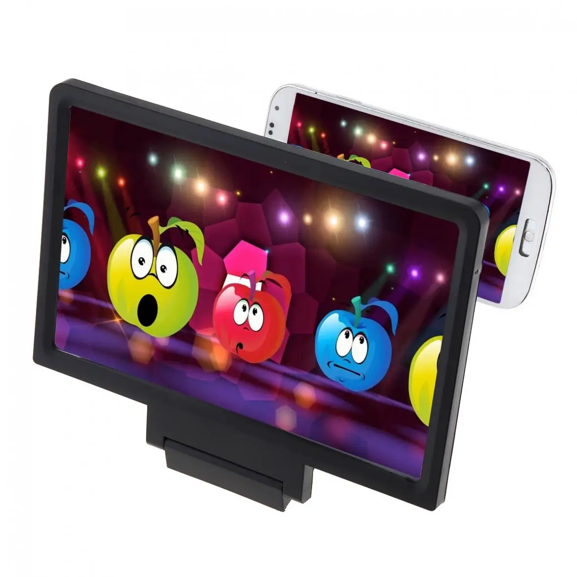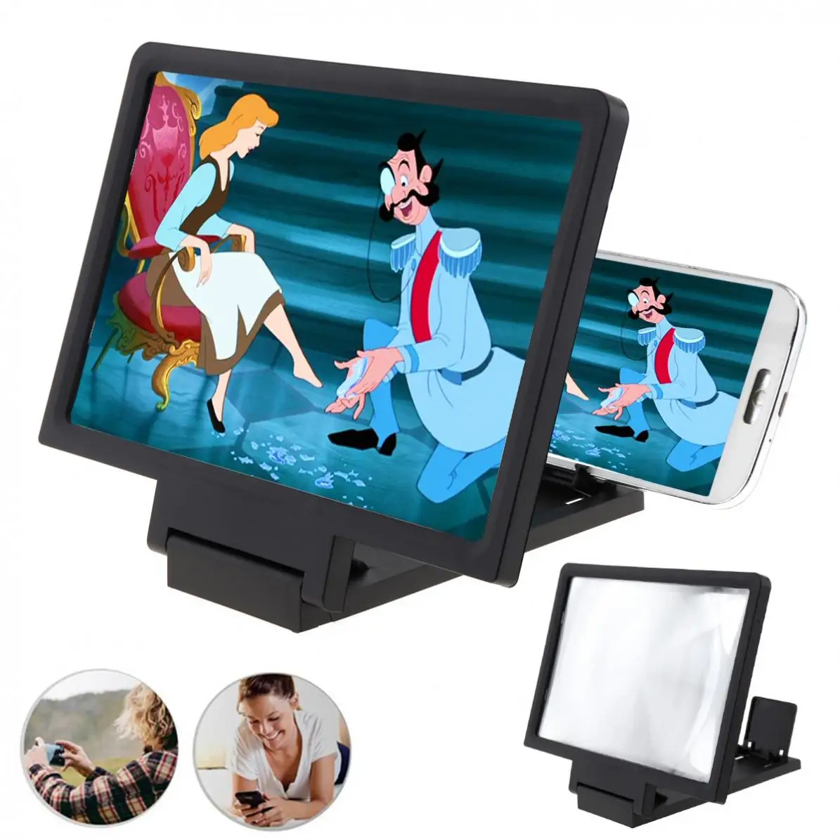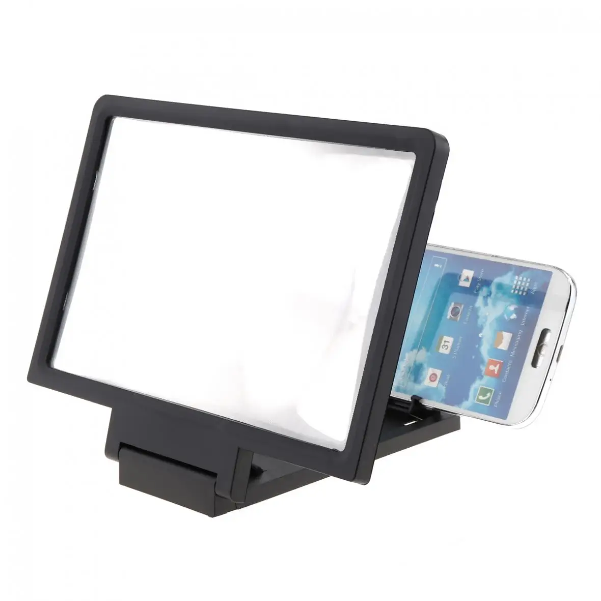 Характеристика:-Оптическая технология HD, простая и компактная, подходит для всех типов мобильных телефонов.-Он может увеличивать изображение на мобильный телефон в 2 - 3 раза, и смотреть его на большом экране. Изображение более четкое и динамичное.-Нет источника питания батареи, простой и удобный, энергосберегающий и экологически безопасный, в любое время и в любом месте можно использовать в личном кинотеатре.-Освободите руки, и вы можете смотреть видео высокой четкости на большом экране на большом расстоянии.-Линза из плексигласа HD, усиление HD, без размытия, без искажений, использование перегородки на светильник, антибликовое, только для эффекта, чтобы показать остро и ярко.-Закройте его, когда он не используется. Легко носить с собой.