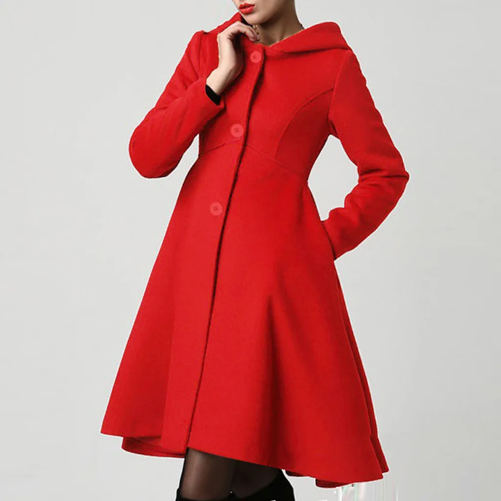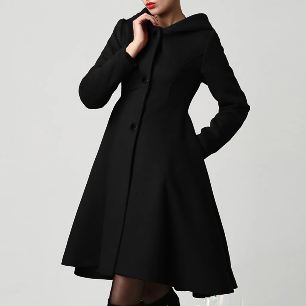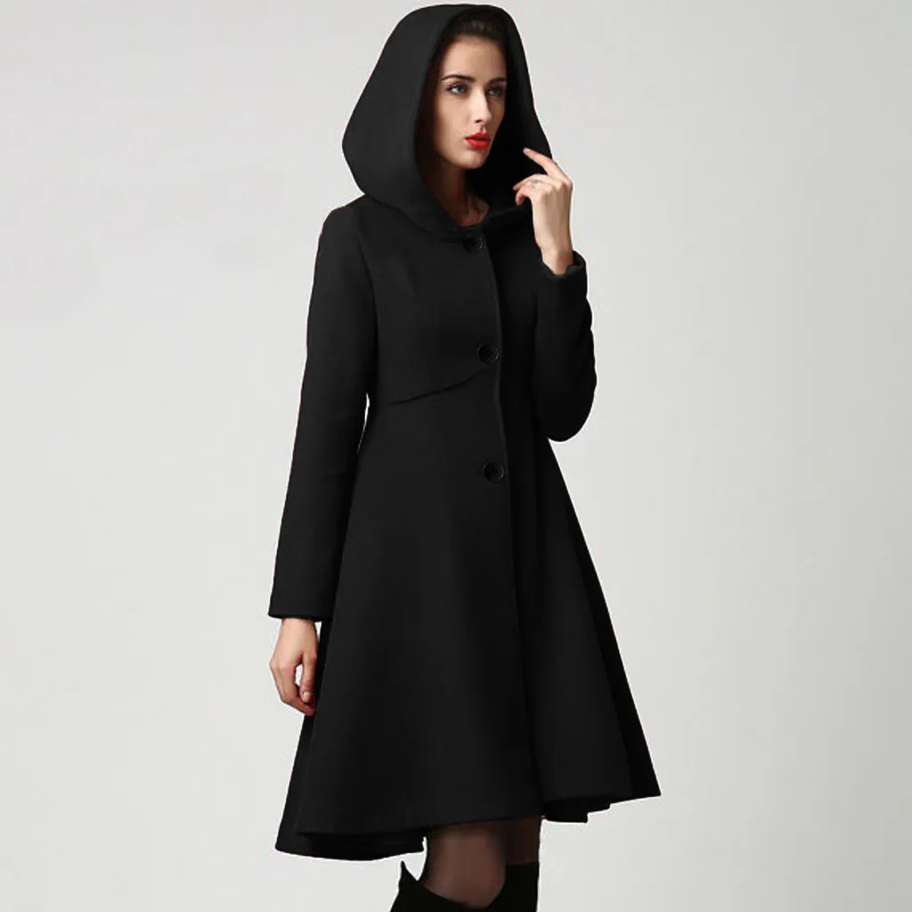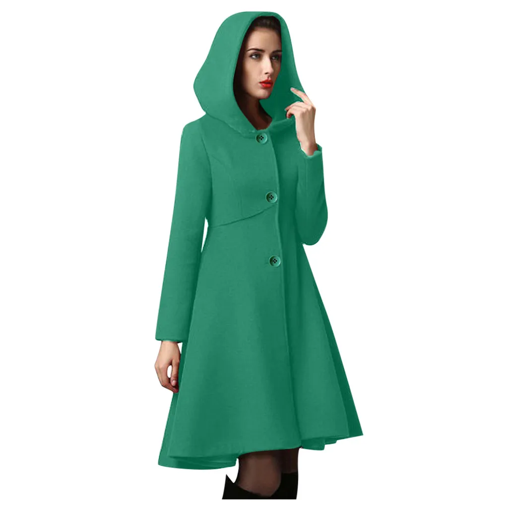 2019 модное зимнее осеннее Женское шерстяное пальто с длинным рукавом, однотонная свободная теплая шерстяная куртка с поясом, верхняя одежда с капюшоном # J30