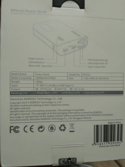Посылка доехала очень быстро. И не удивительно, с РФ складов то) Беру уже 2й раз по завершению своего знакомого. Банки ROMOSS очень хорошие и дешёвые. Брал только потому, что мой Xiaomi 10к махов уже умирает. К придиркам могу отнести комплектный micro-usb кабель, но да ладно, в хозяйстве пригодится. И от tipe-c заптать тоже можно, но не телефон. Рекомендую.