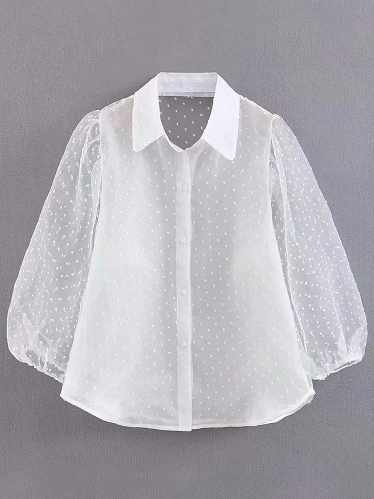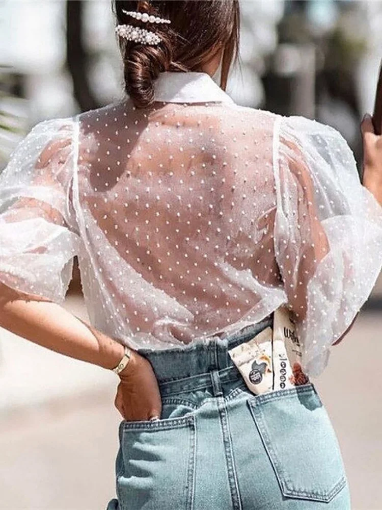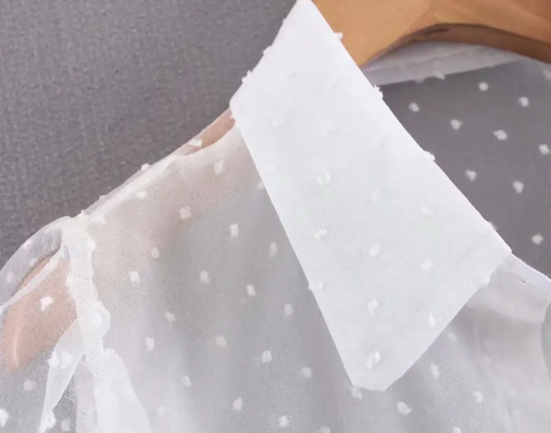 Женская блуза с вышивкой в горошек, с рукавом-фонариком