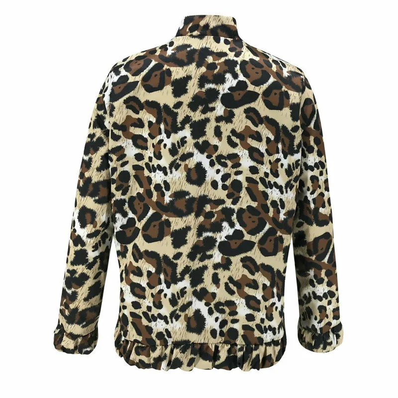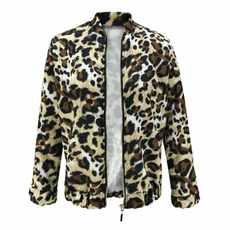 Новинка, женские пальто с длинными рукавами, леопардовые узоры, короткая верхняя одежда на молнии, Модные женские осенние повседневные куртки, хит продаж!