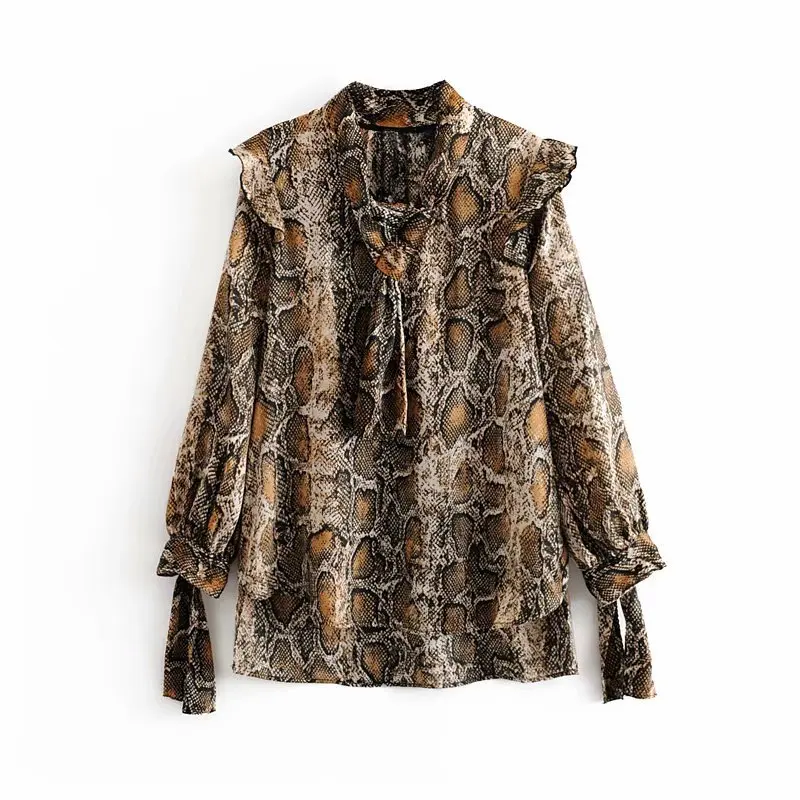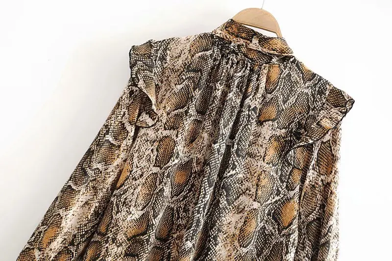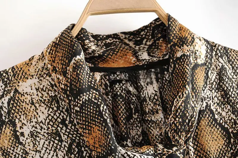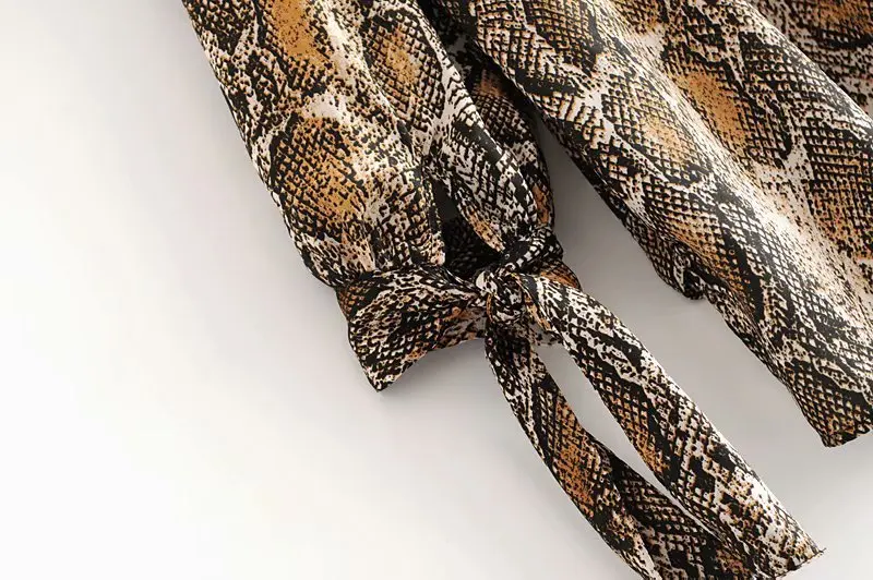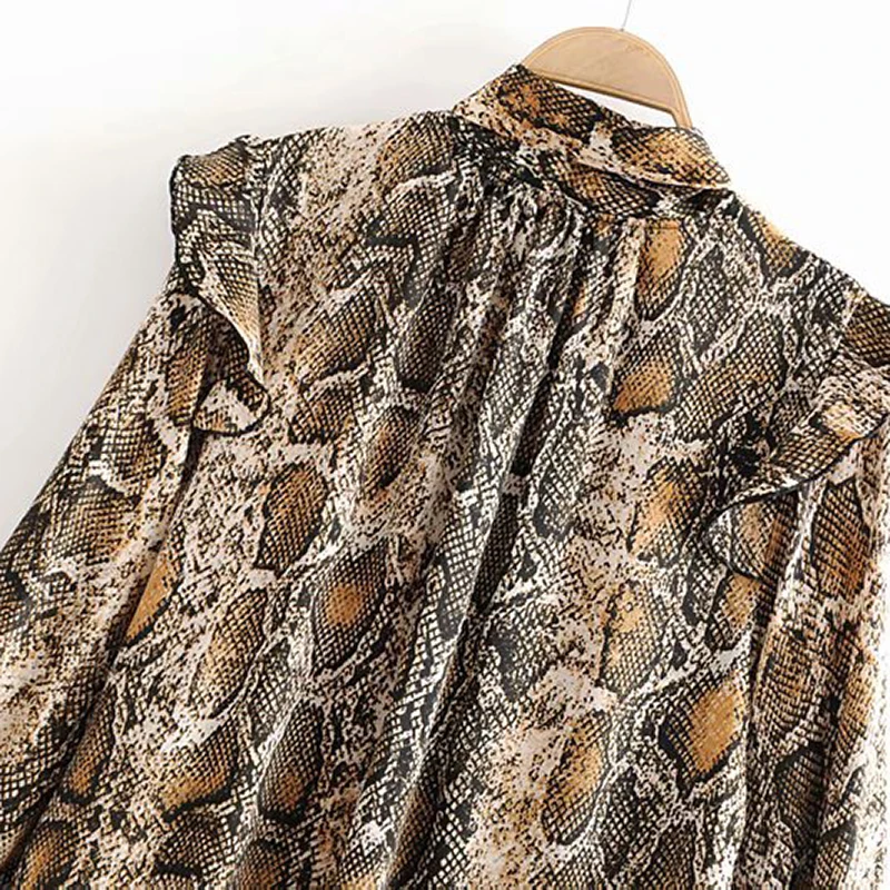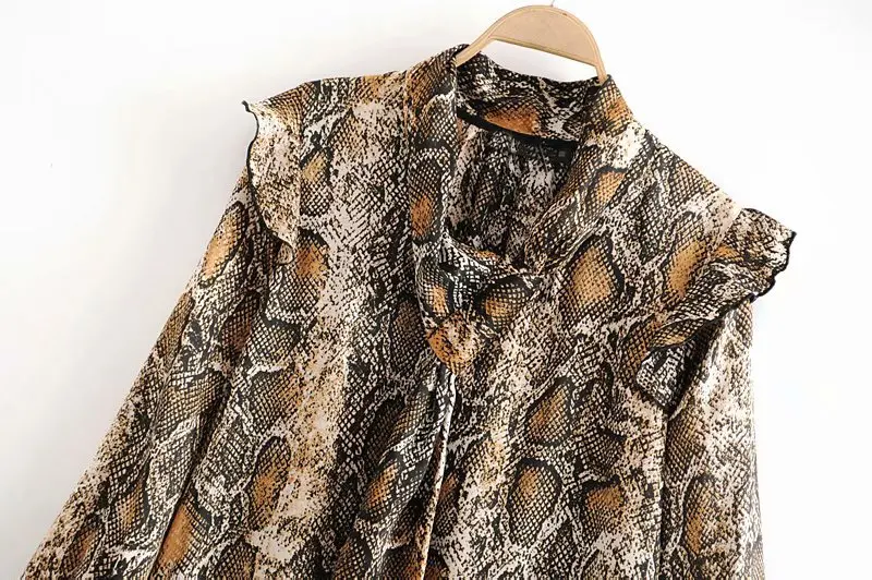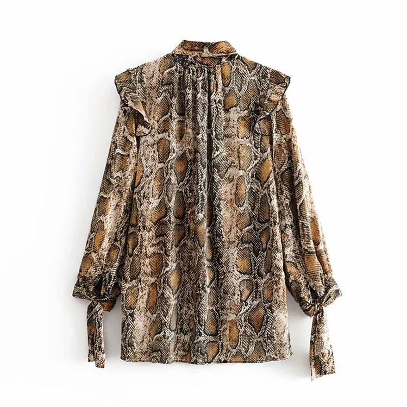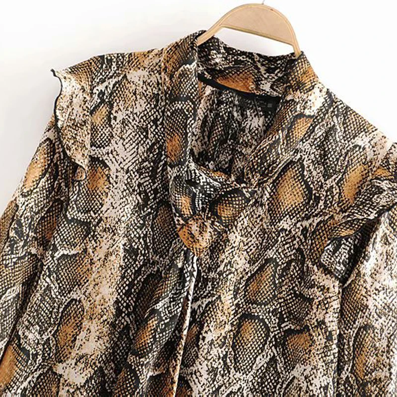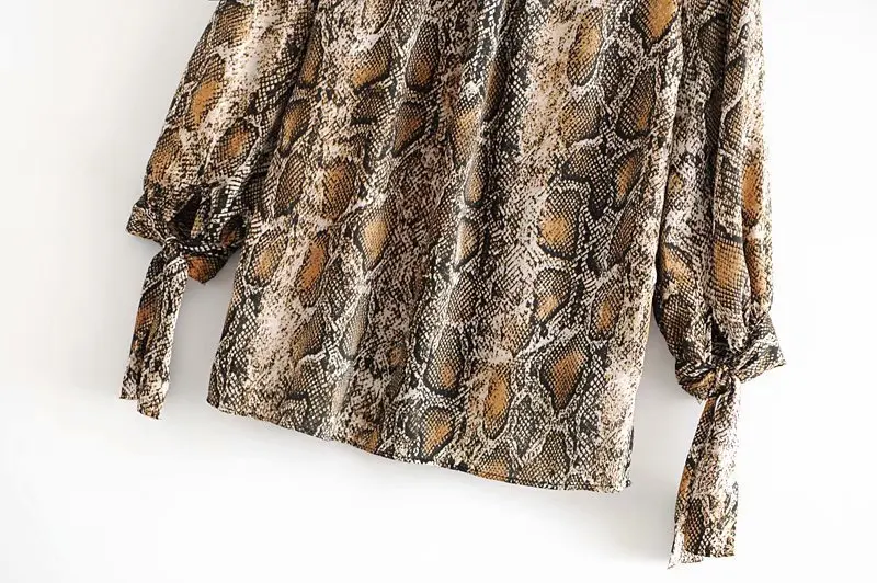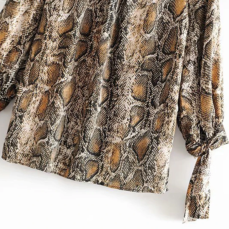 Женская блузка со змеиным принтом Aachoae, свободная блузка с длинными рукавами и воротником-бантом, осенняя рубашка на шнуровке
