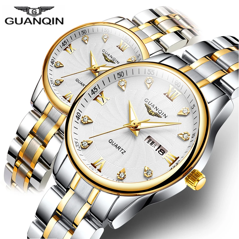 Часы наручные GUANQIN GS19127 для мужчин и женщин, Роскошные Кварцевые парные, с датой, из нержавеющей стали, для пар, 2022